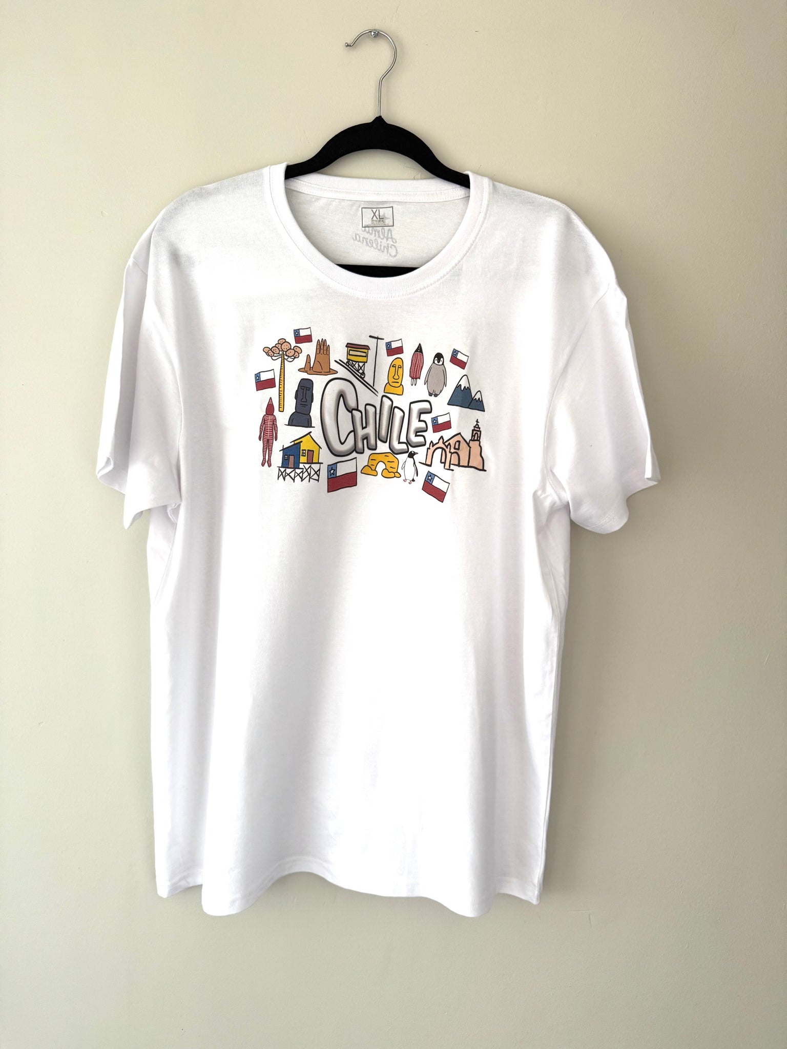Esta polera color BLANCO rinde homenaje al patrimonio cultural de Chile , diseño exclusivo de Íconos de Chile , estampado en alta calidad y en full color con tinta pigmentada, logrando un acabado nítido, duradero y lleno de Vida.