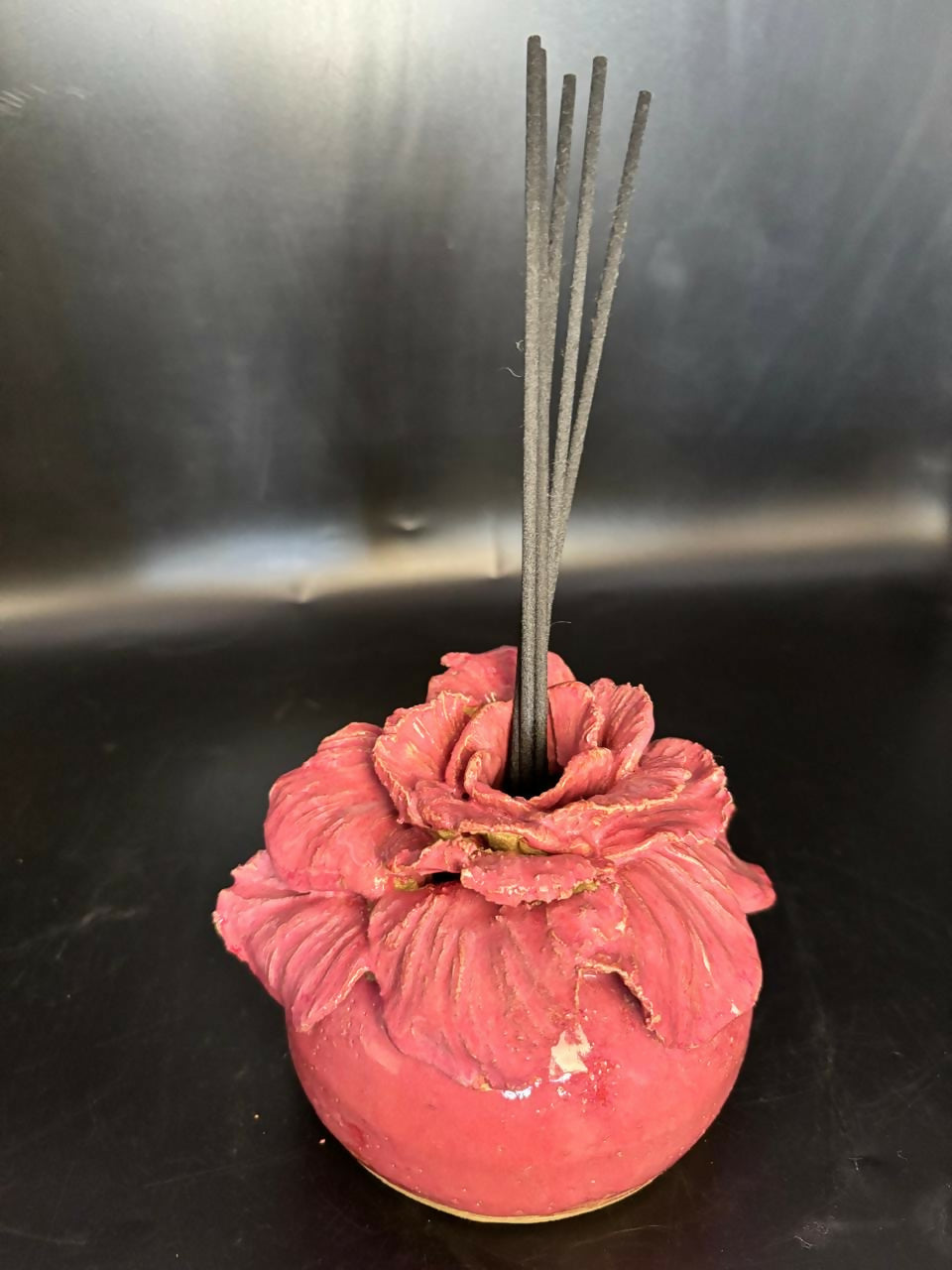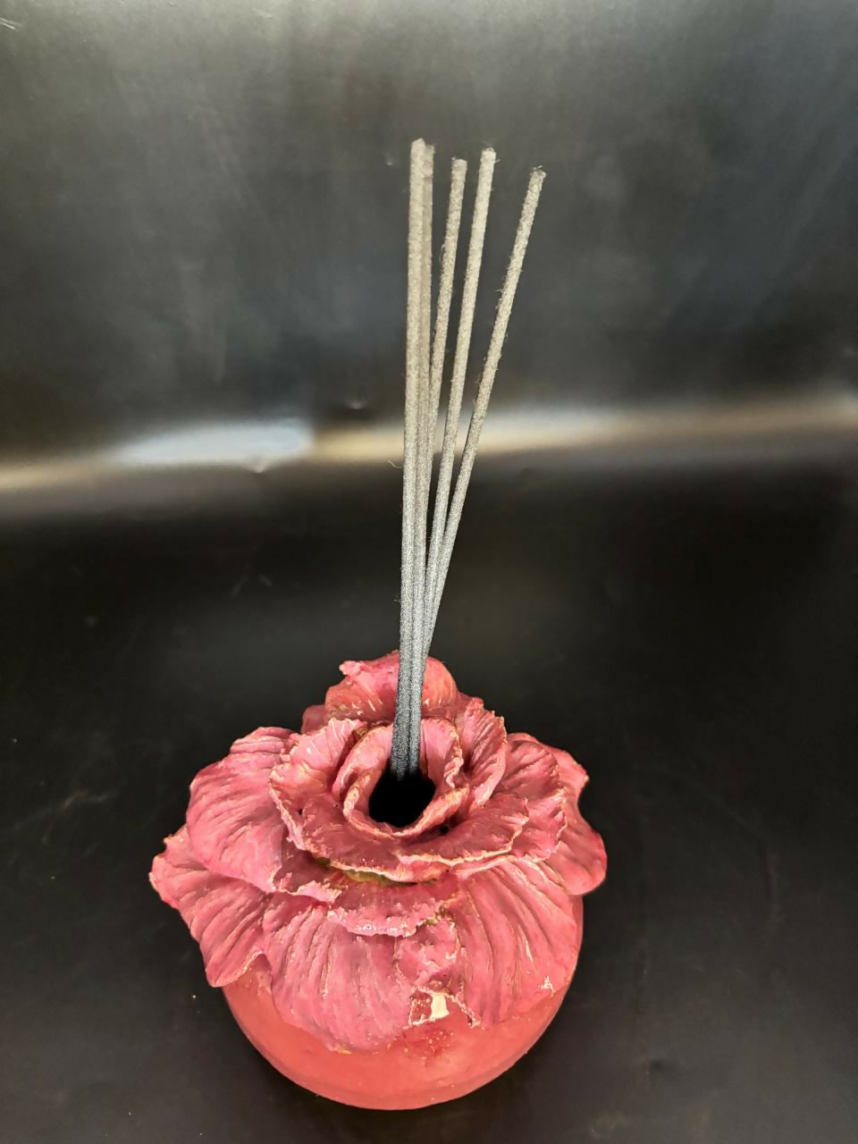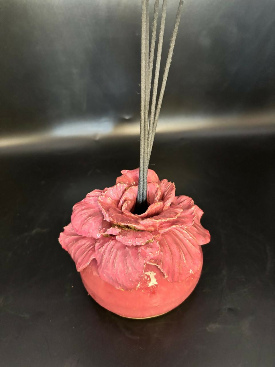 Original porta aromatizador de cerámica gres con aplicación de flor,