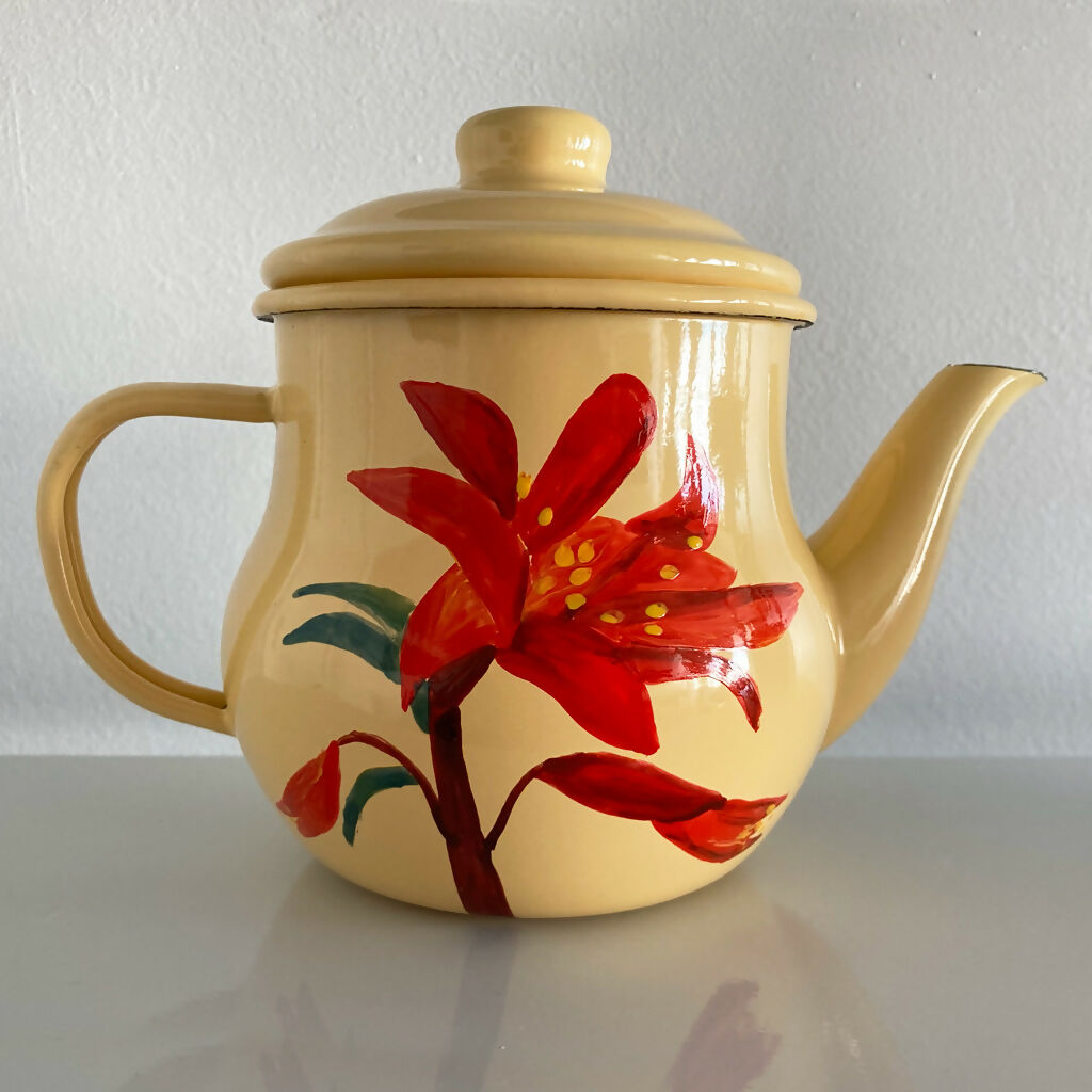 Tetera Enlozada Pintada a Mano - Diseño: Resiliente Añañuca (500cc)