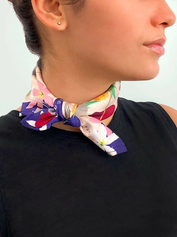 De norte a sur, Chile regala maravillosos paisajes adornados por su fantástica fauna y flora. Nuestro pañuelo presenta un diseño inspirado en los hermosos picaflores presentes en Chile: Picaflor del Norte, Picaflor de Cora, Picaflor Gigante, Picaflor de Juan Fernández y Picaflor Cordillerano. Además las bellas flores de Trompetas de Atacama, Copihue y Astromelias.