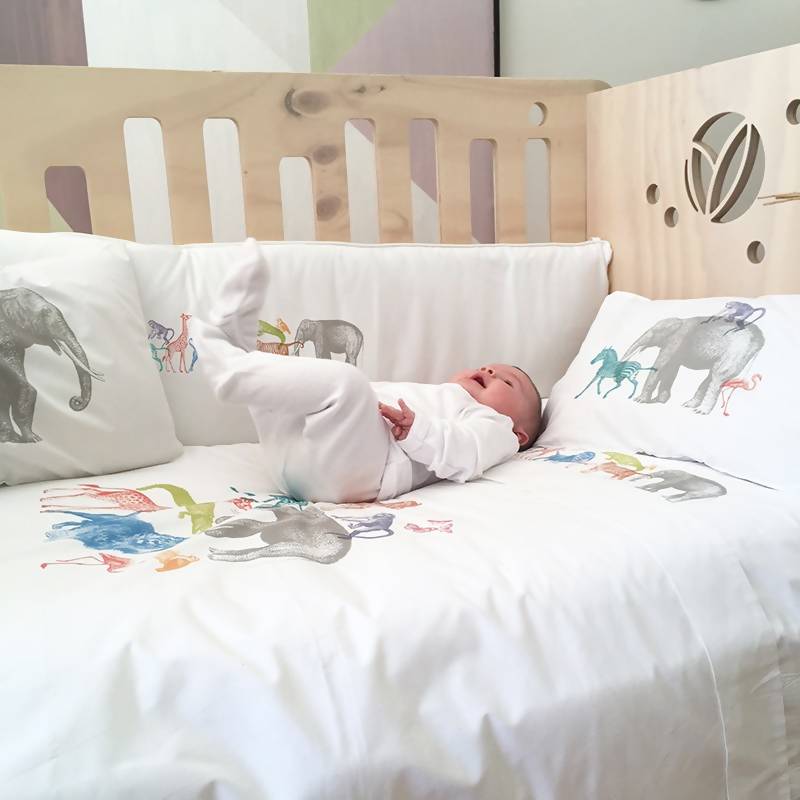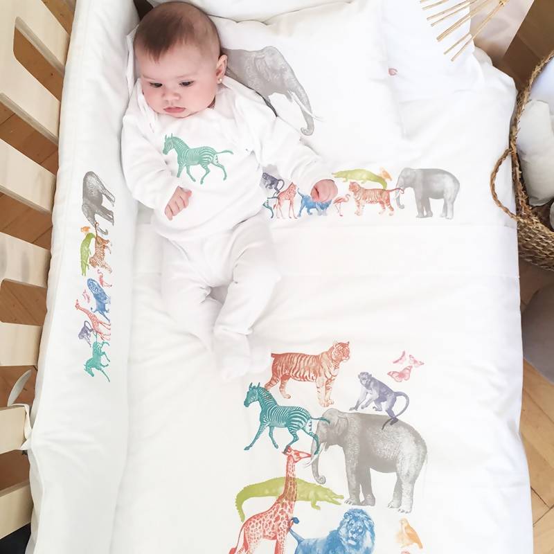 Tu bebé podrá tener los más lindos sueños con este cubreplumón hipoalergénico, 100% algodón. Además podrás encontrar el juego de sábanas del mismo diseño Su delicado estampado harán que su dormitorio sea un lugar placentero y precioso.