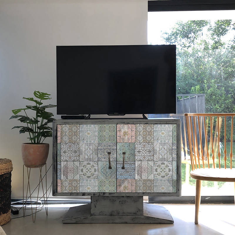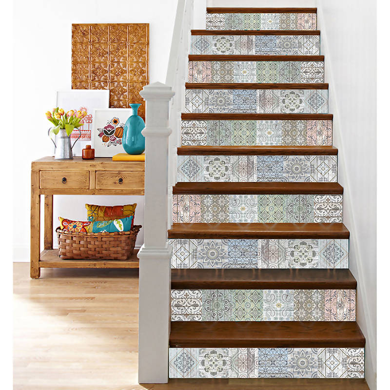 Azulejos de vinilo autoadhesivos de 15x15cm cada uno. Cada paquete trae 12 unidades mixtas, es decir son todas diferentes, tal como se puede ver en la foto.