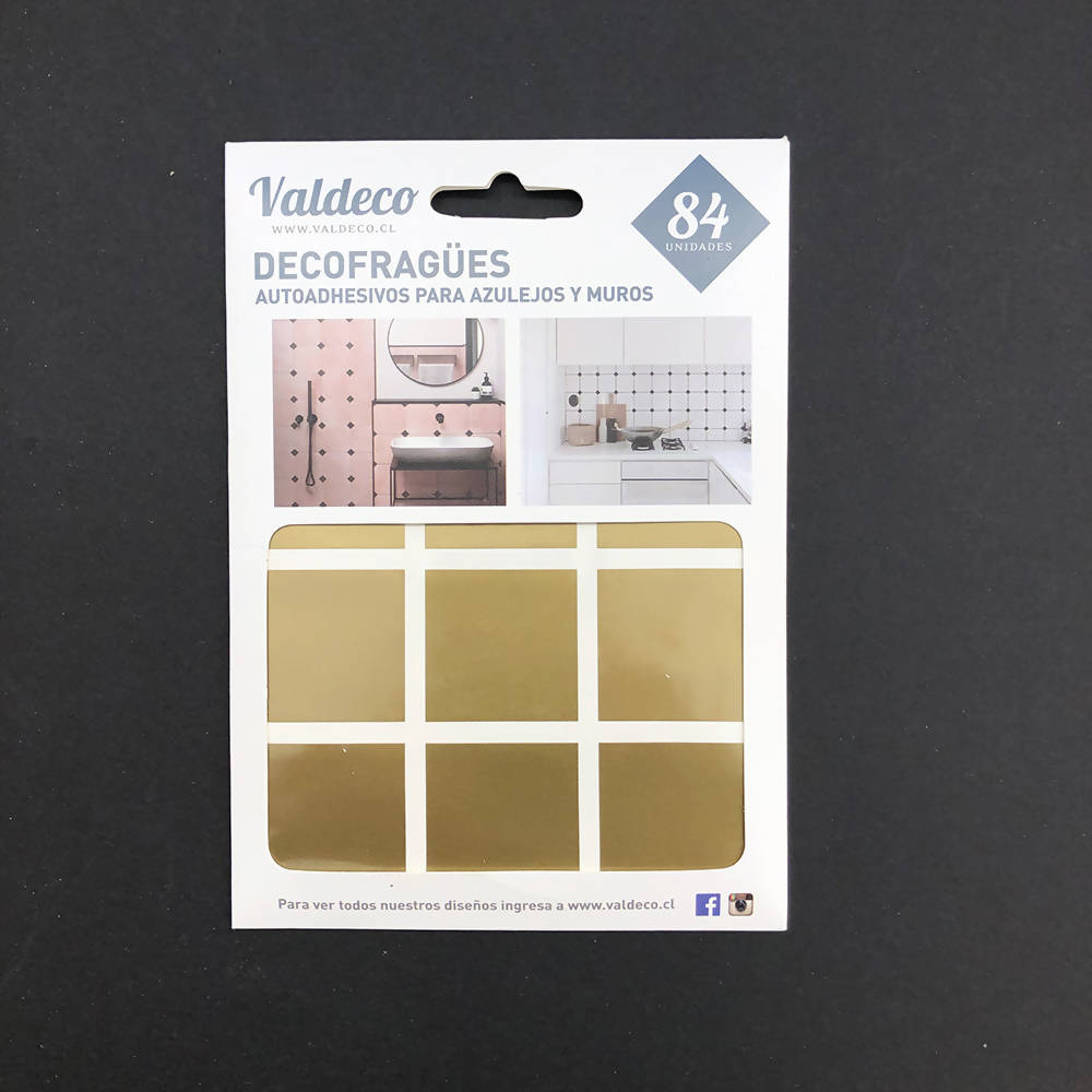 Los Decofragües son cuadrados de vinilo autoadhesivos para poner en las intersecciones de las baldosas o azulejos, dándoles así un nuevo look a los muros de cocinas, baños, o cualquier lugar de la casa que cuente con azulejos. Es un pequeño detalle, pero un gran cambio. También, se pueden usar en muros lisos, puertas de muebles o cualquier superficie vertical, otorgándoles un detalle de color y creando figuras o patrones para personalizar espacios.