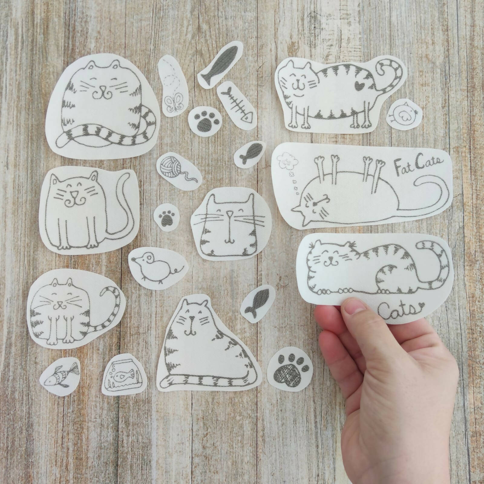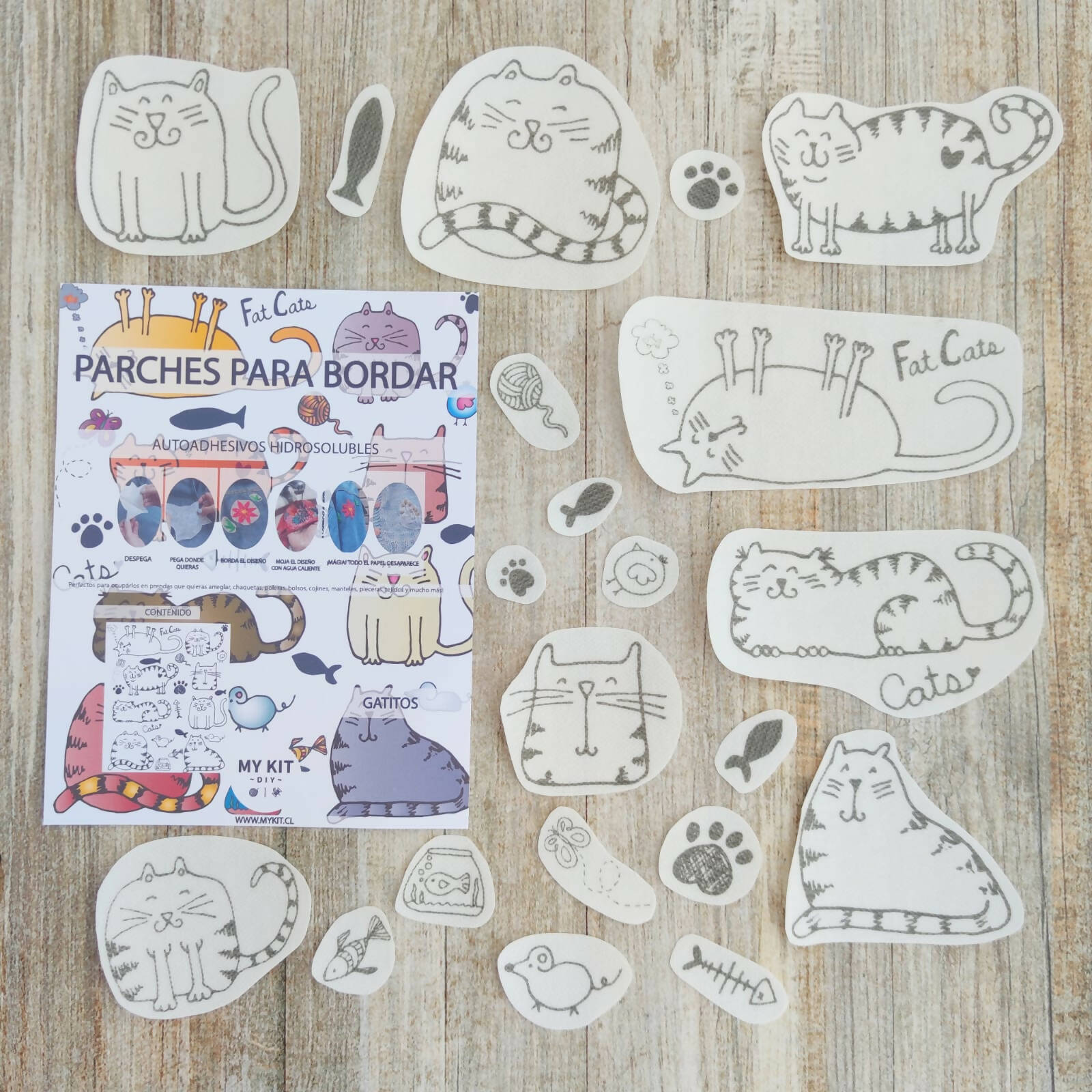 - 15 parches hidrosolubles, (Se deshacen con el agua) de diferente tamaño y diseños de gatitos