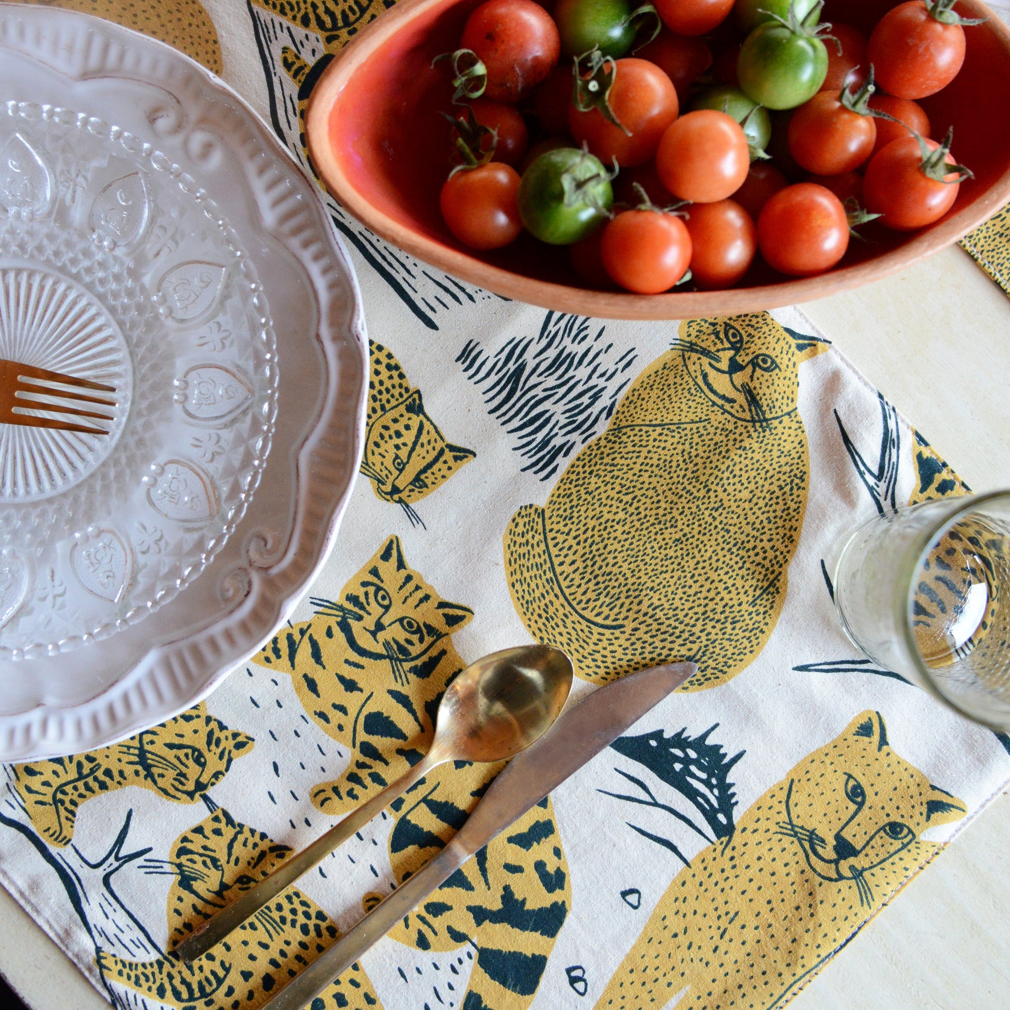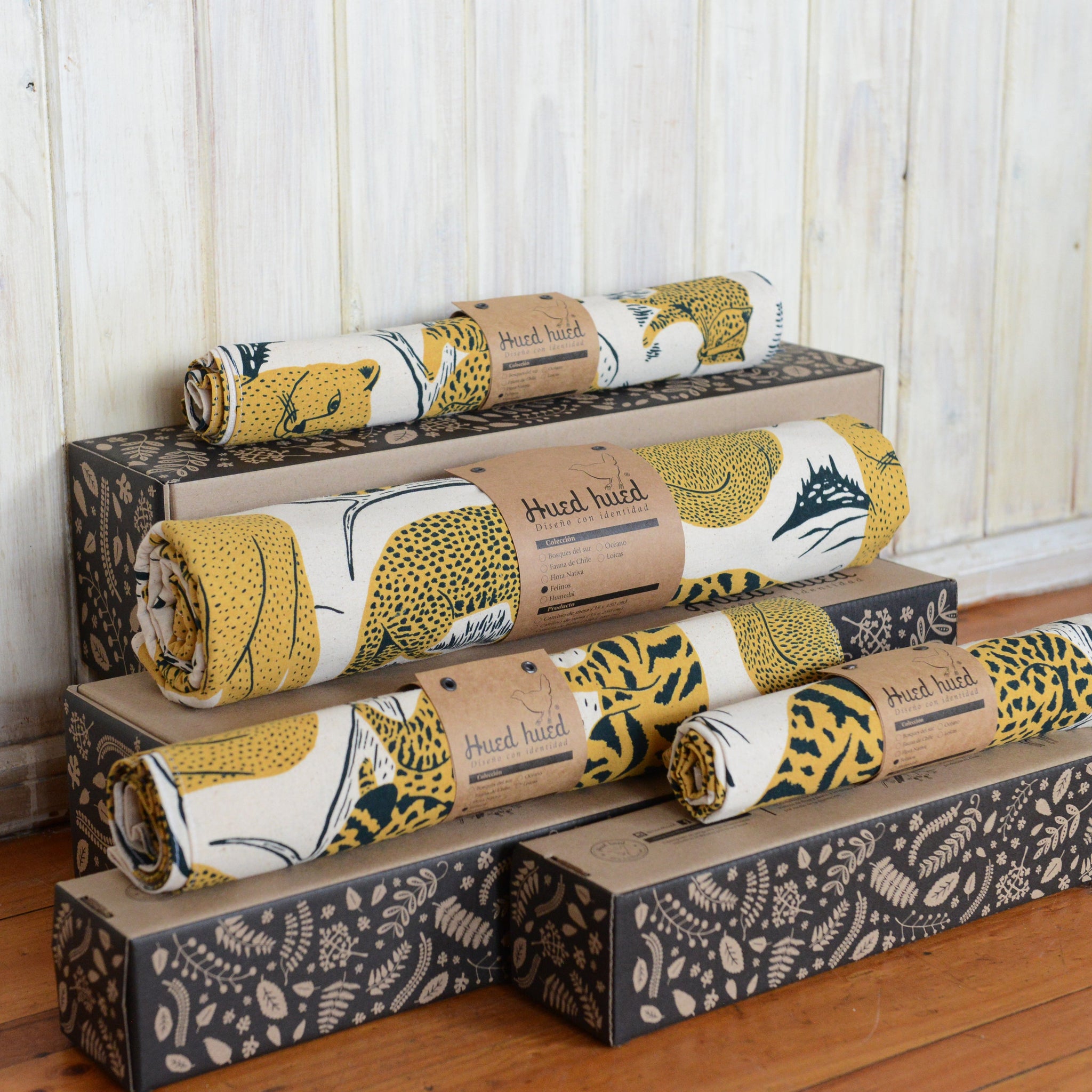 Individuales estampados en serigrafía con ilustraciones exclusivas realizadas por Hued hued. Esta colección está inspirada en las diferentes especies de felinos que habitan en Chile: El Puma, el Gato Colo-Colo, el Gato Montés Andino, la Huiña y el Gato Geoffroy. Los felinos autóctonos, son sin duda una de las especies más hermosas que habitan en las montañas y en los bosques de nuestro territorio, y con sus característicos pelajes, dan forma a una de nuestras más llamativas colecciones.