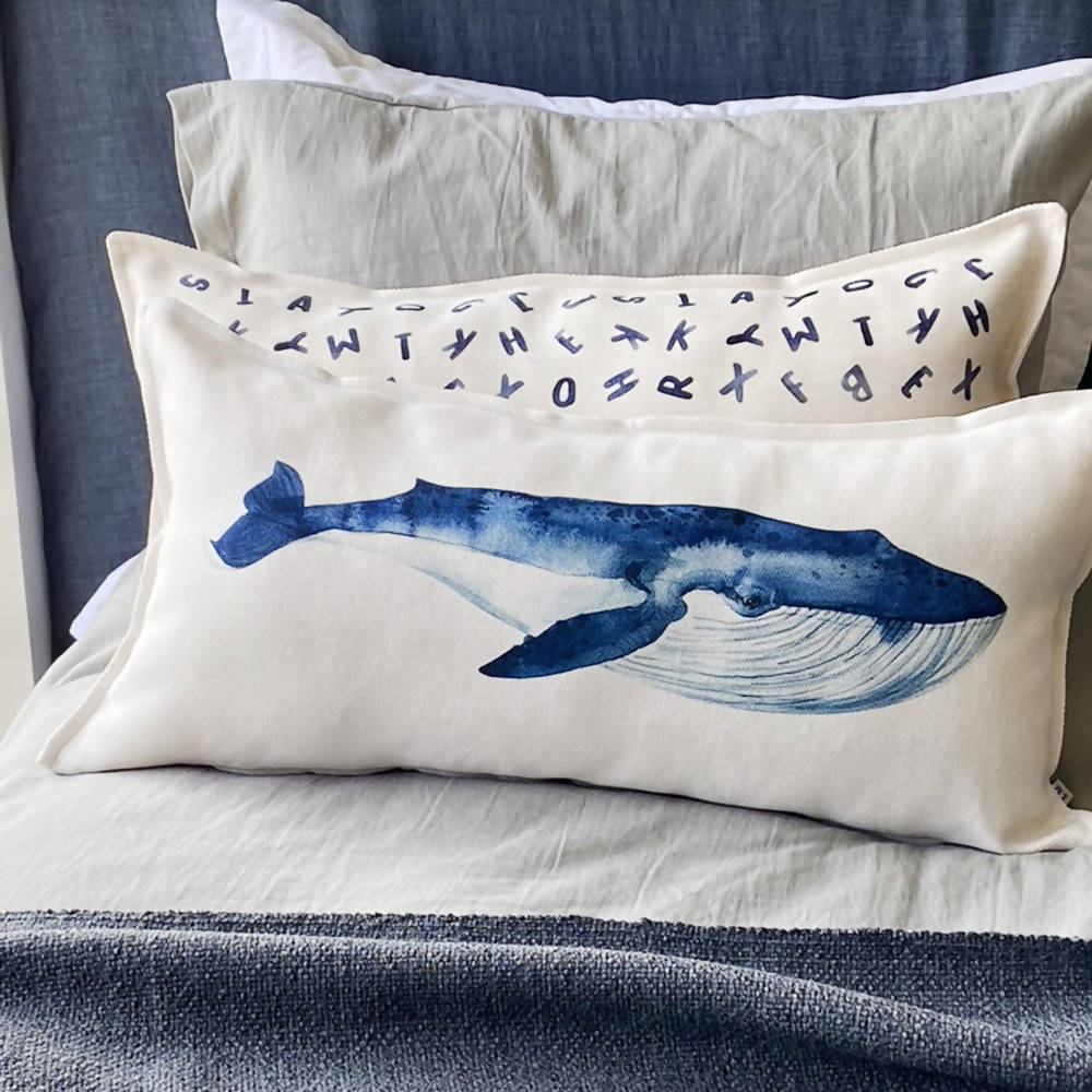 Precioso cojín en Linet (lino con poliéster) crudo estampado de 70 x 35 cm.