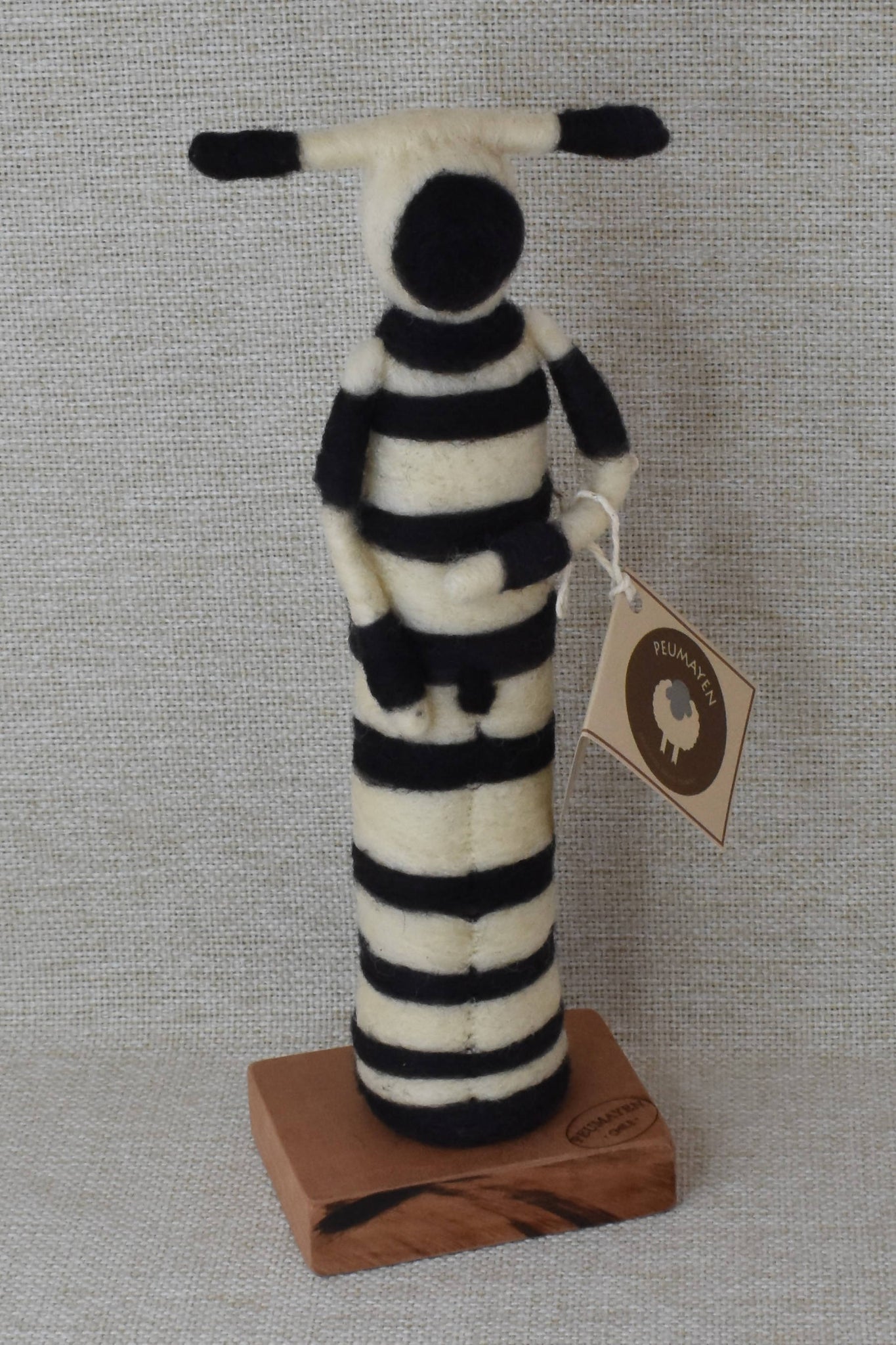 Representación de un Hombre Selknam u Ona llamado Kotaix, con la técnica de "Fieltro Aguja", sobre una madera nativa de Roble.
