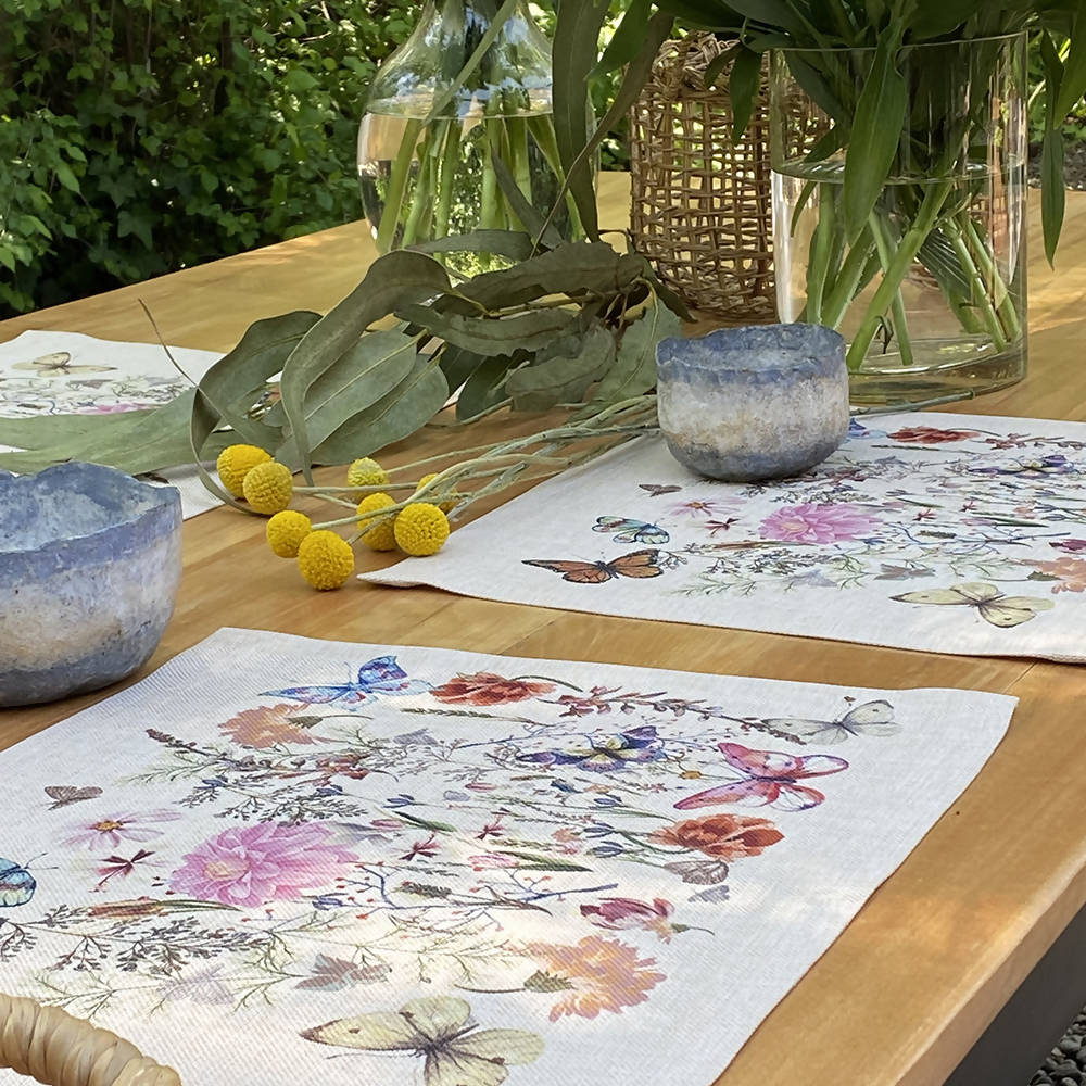Precioso set de individuales de exquisito linet natural estampados, 36×42 cm.