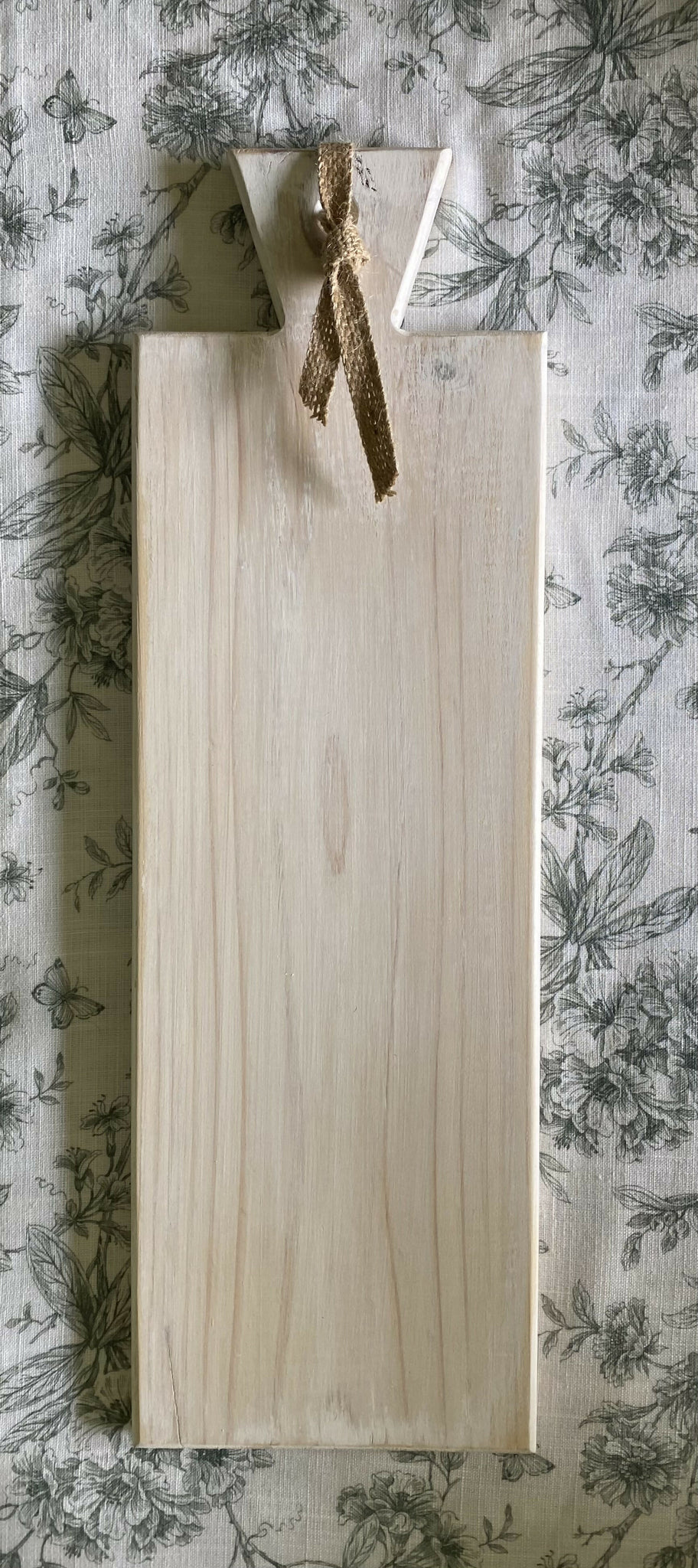 Tabla de picoteo de madera tratada con productos al agua y fácil de limpiar.
