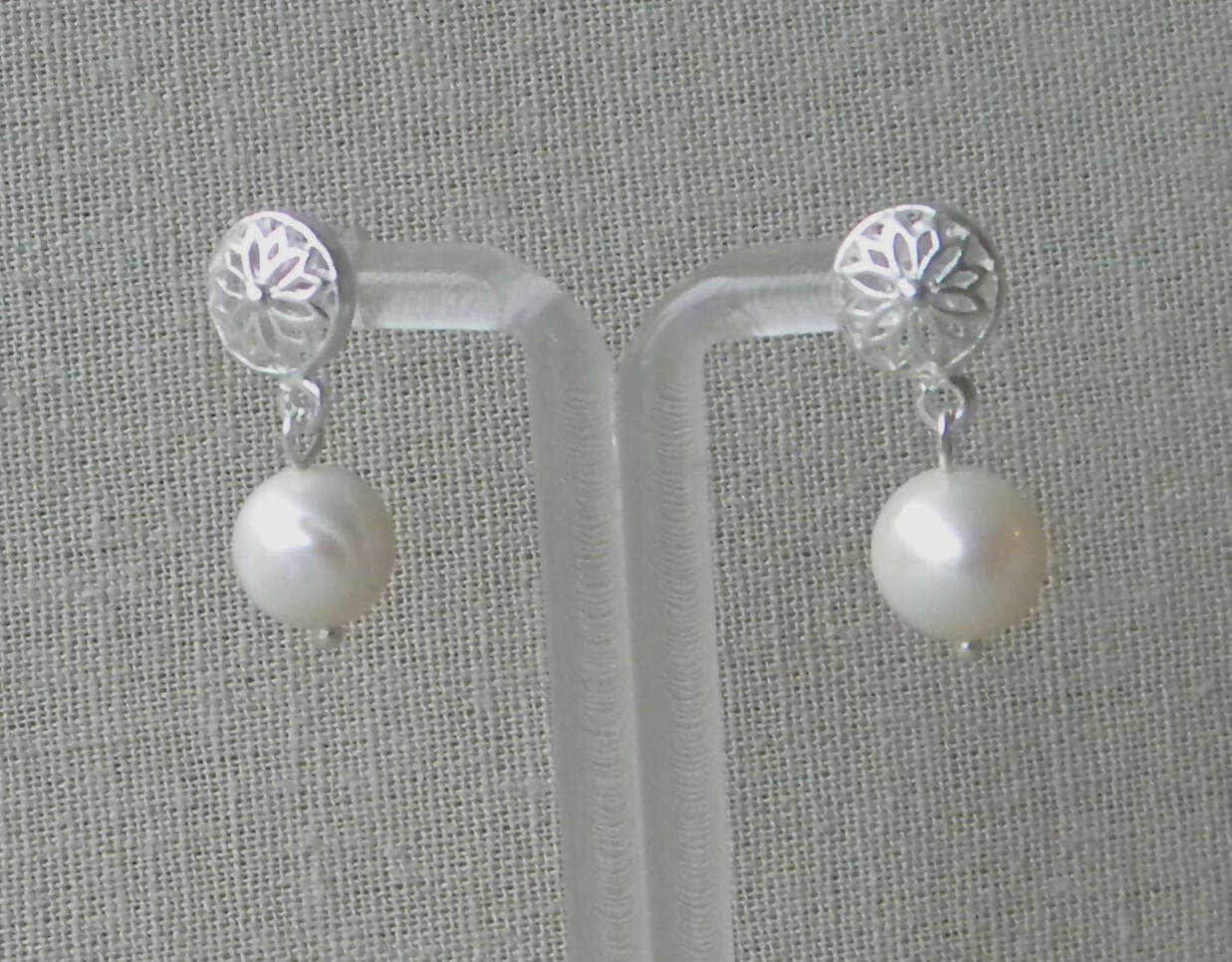 Poseen una base redonda en volumen de 1cm de diámetro, con un diseño delicado de mandala con una terminación sólida en plata 950 que lo hace firme combinado con perlas de río.