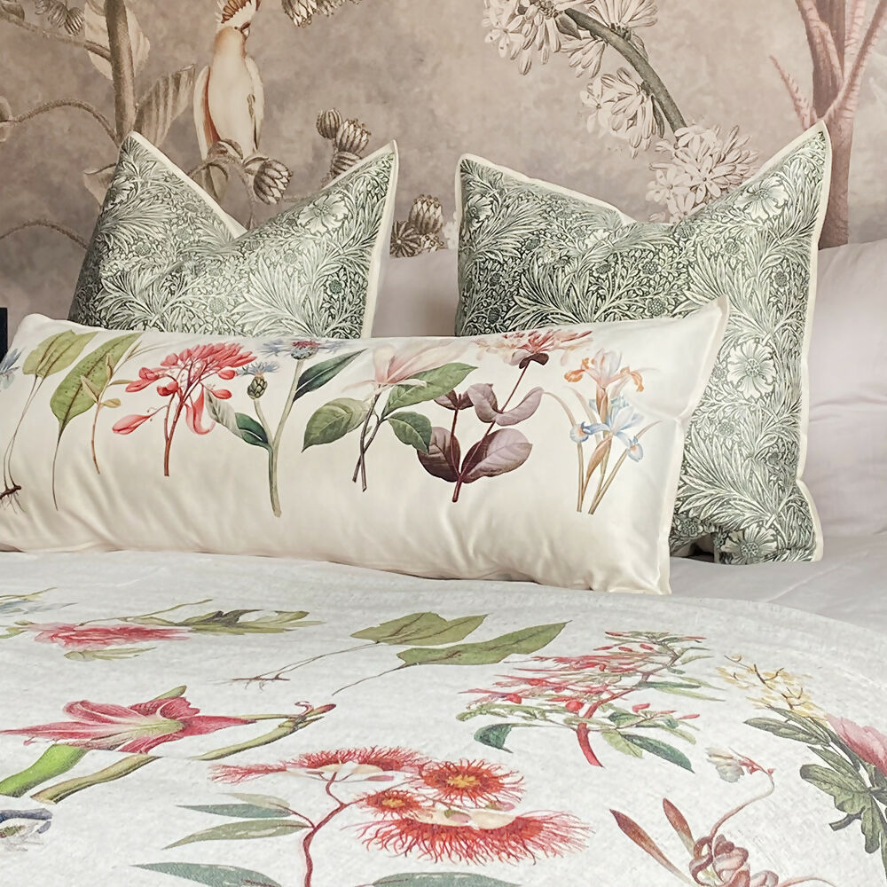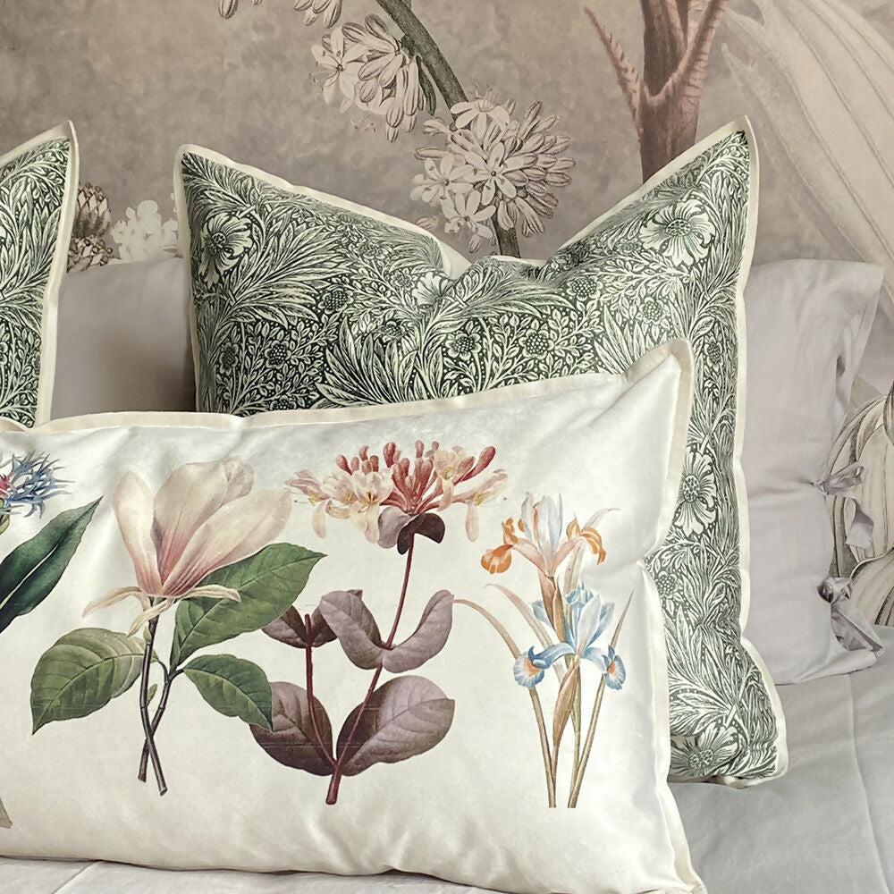 Exquisito cojín en Velvet crudo estampado de gran dimensión y con suave textura