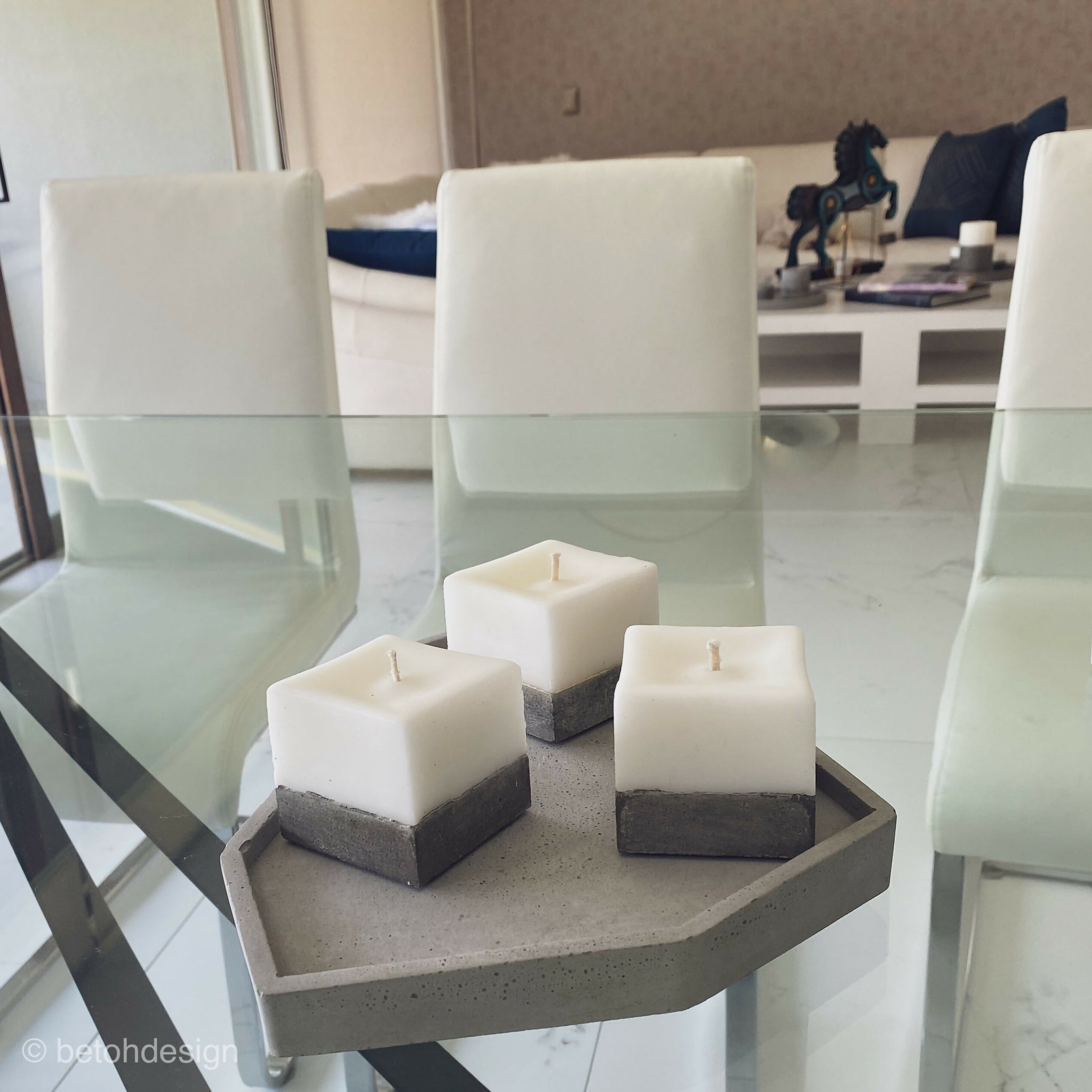 Set de 3 Bases de Hormigón multiuso, para combinar como elemento decorativo y funcional en cualquier lugar de tu casa. Puedes usarlas sobre una mesa junto con velas, jarros de vidrio, embarrilados BETOH ®, y elementos ornamentales, o bien, puedes colocarlas como base para picoteo cuando tengas invitados.