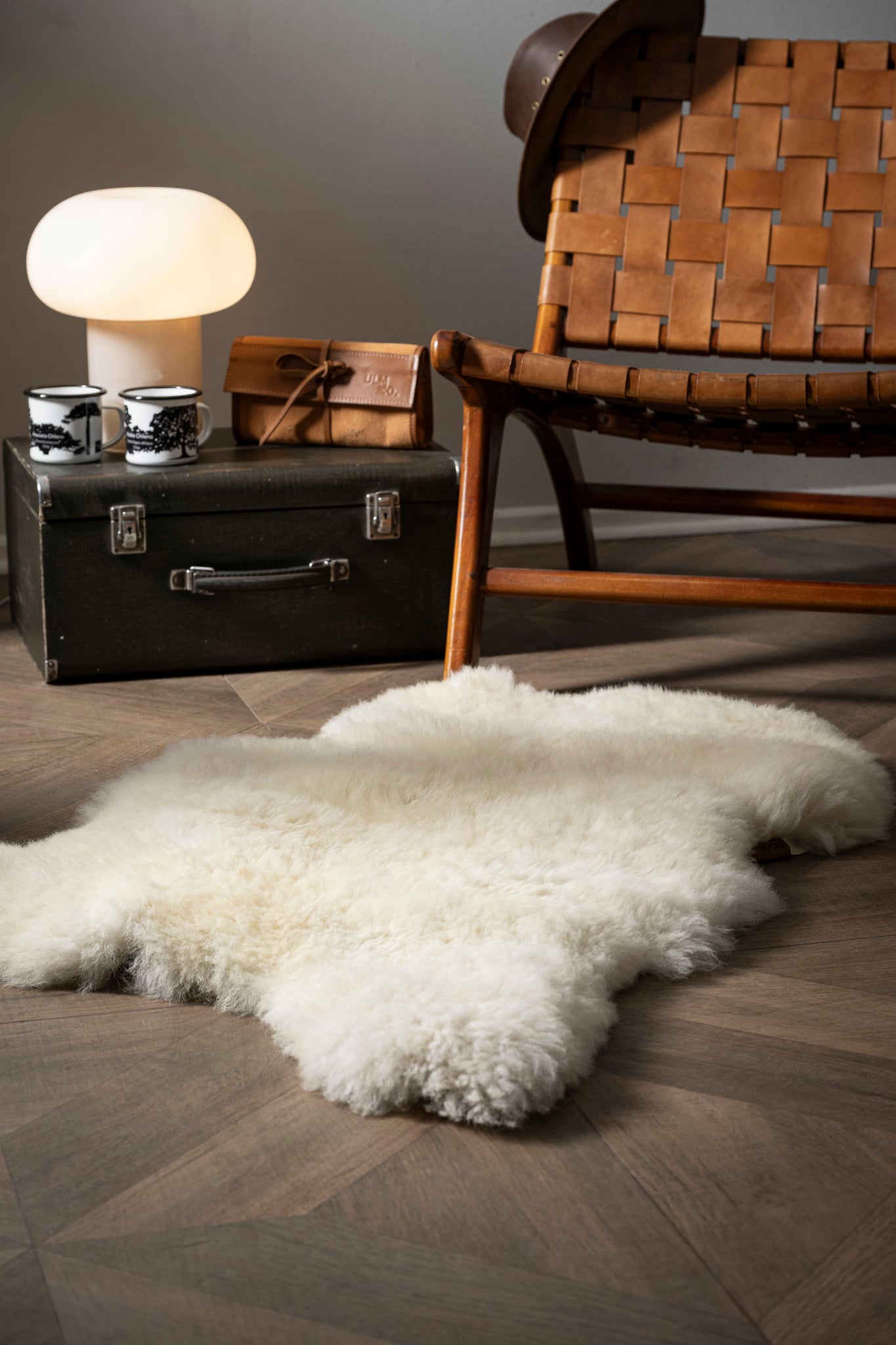 Esta alfombra de oveja lana es una adición acogedora y elegante para cualquier habitación. La lana proporciona calidez y suavidad mientras que el cuero agrega durabilidad. Disfrute de la comodidad y la belleza de esta alfombra en su hogar.