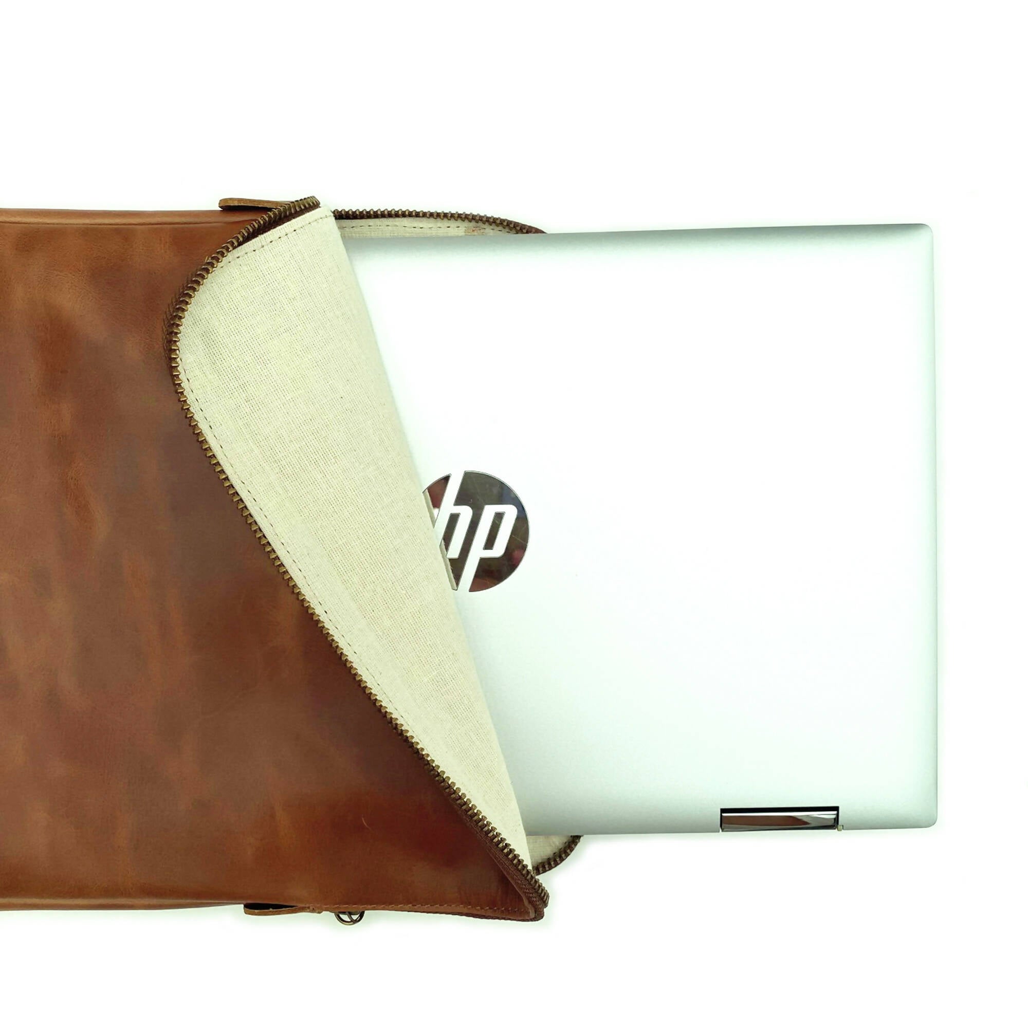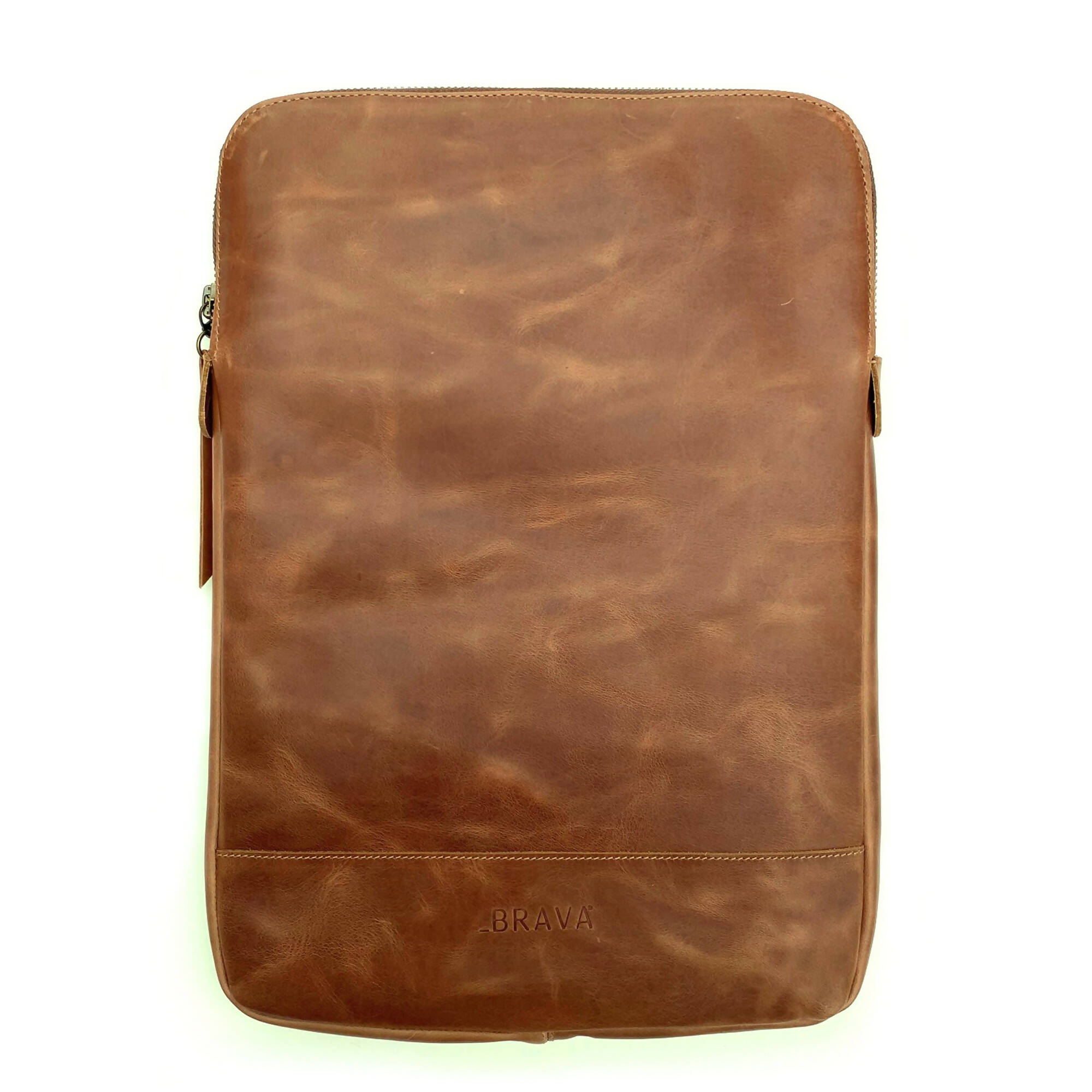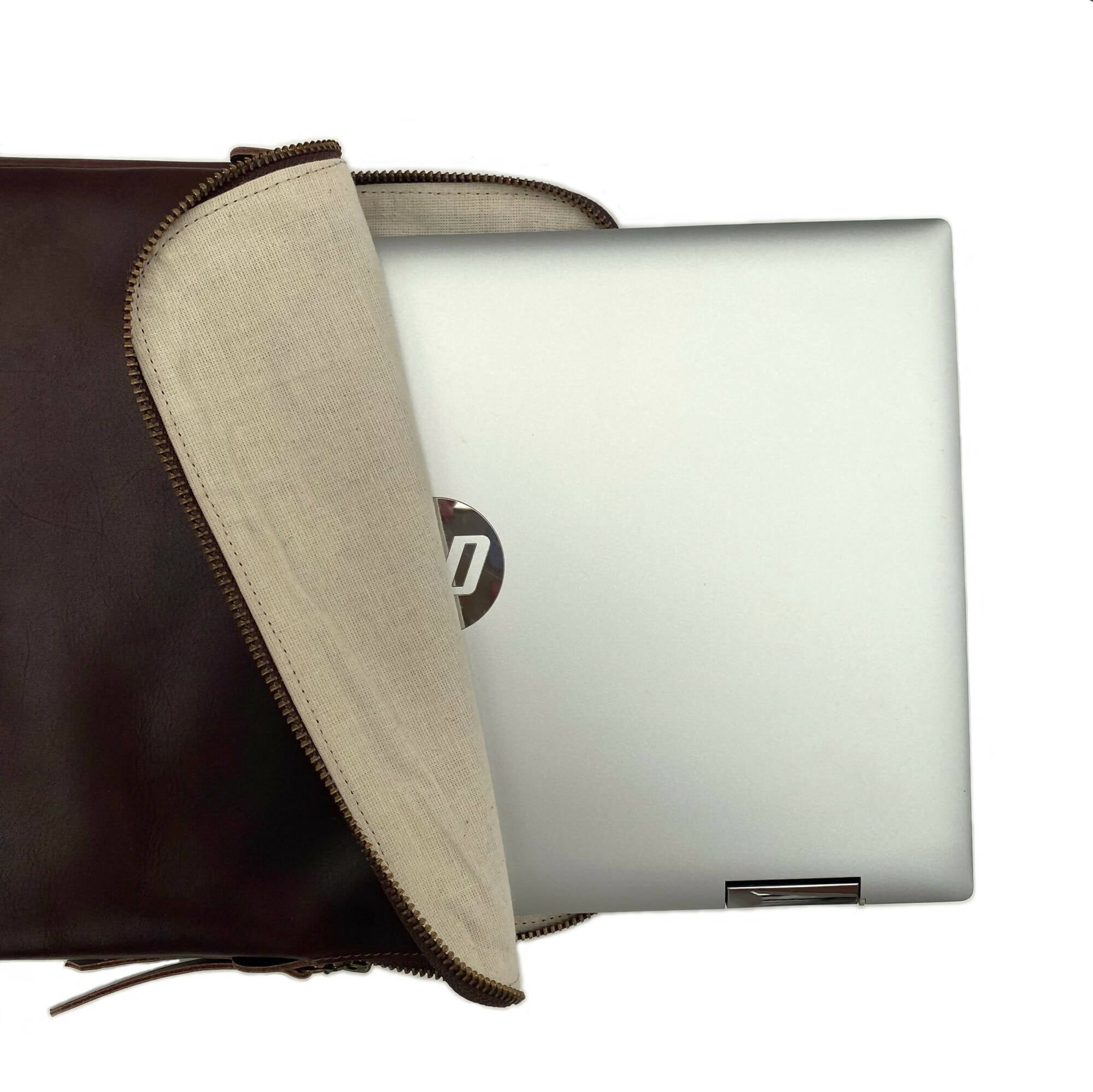 Funda & Estuche para Notebook en cuero natural, hecho a mano, te permite llevar tu notebook protegido en forma simple y sin ocupar demasiado espacio. Es muy liviana y fácil de transportar. Lleva cierre cremallera y forro de crea algodón.