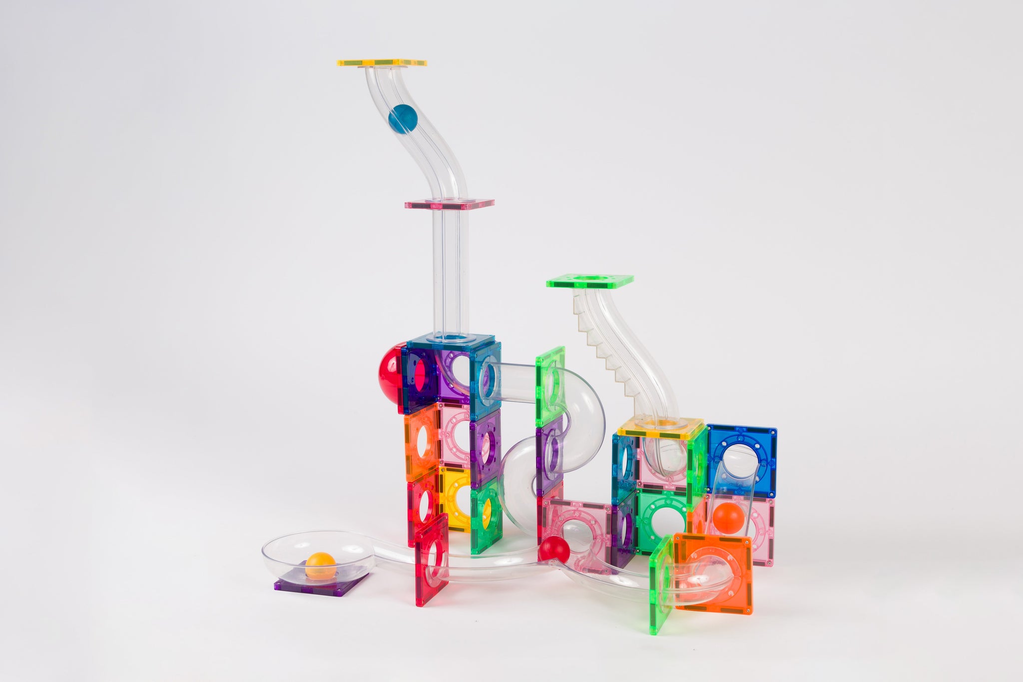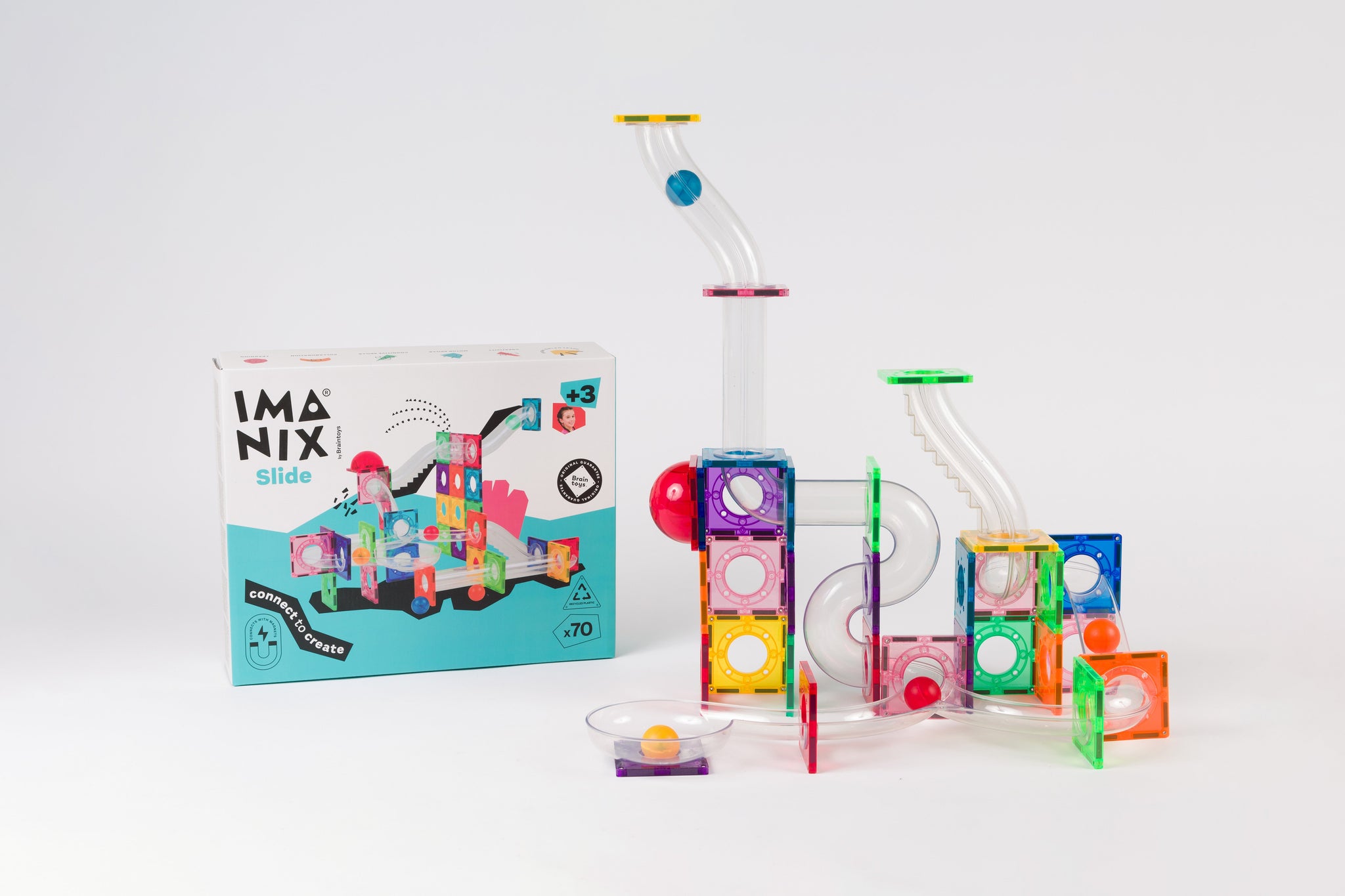 Crea tu propio tobogán y deja que la pelotita ruede sin parar. El juego de bloques de construcción IMANIX Tobogán de 134 piezas es perfecto para ello. Construye un circuito en 2D y 3D con bloques geométricos de diferentes tamaños, colores y curvas.
