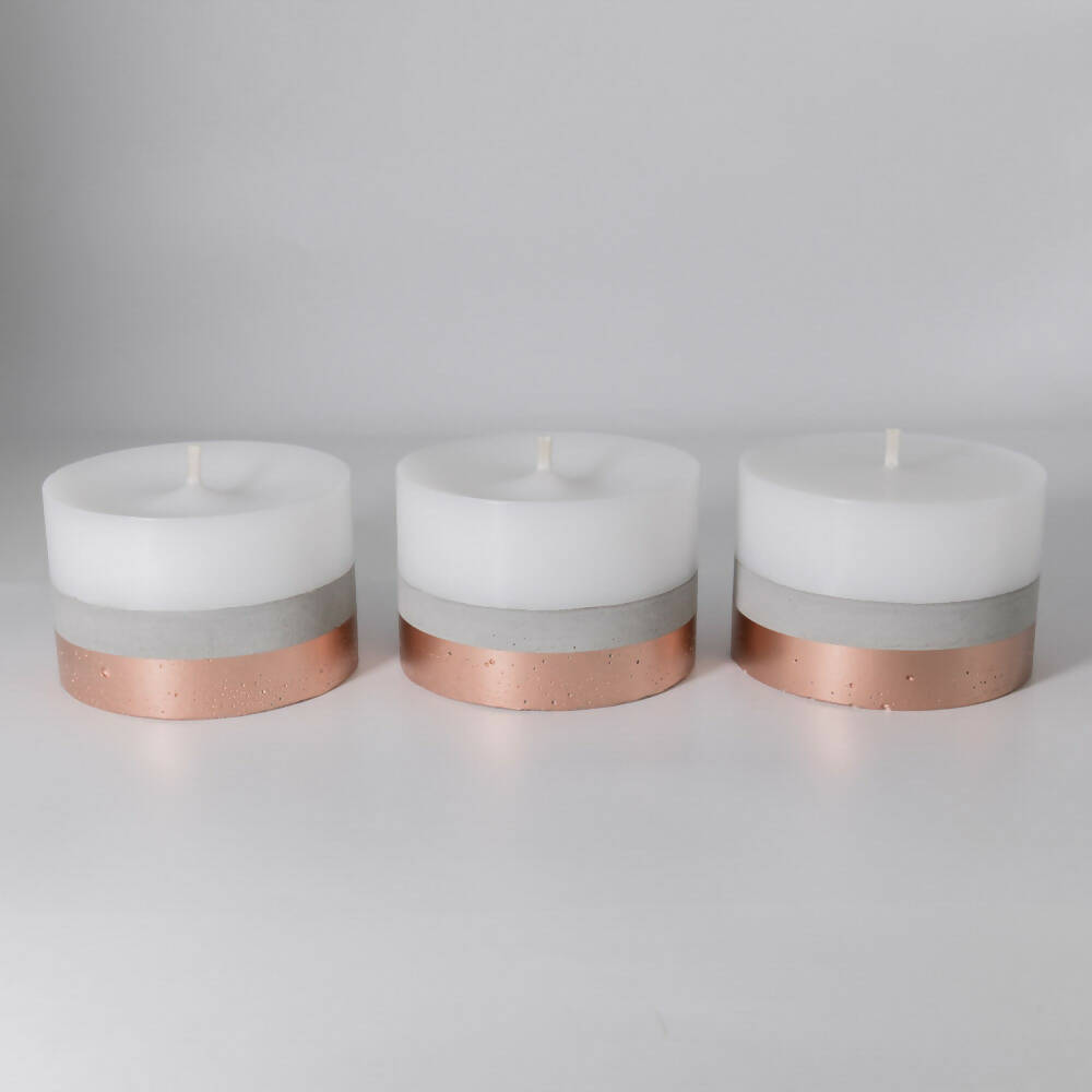 Pack 3 Velones XS con hormigón Línea Cobre (7cm X 10,5cm de diámetro c/u) Küme