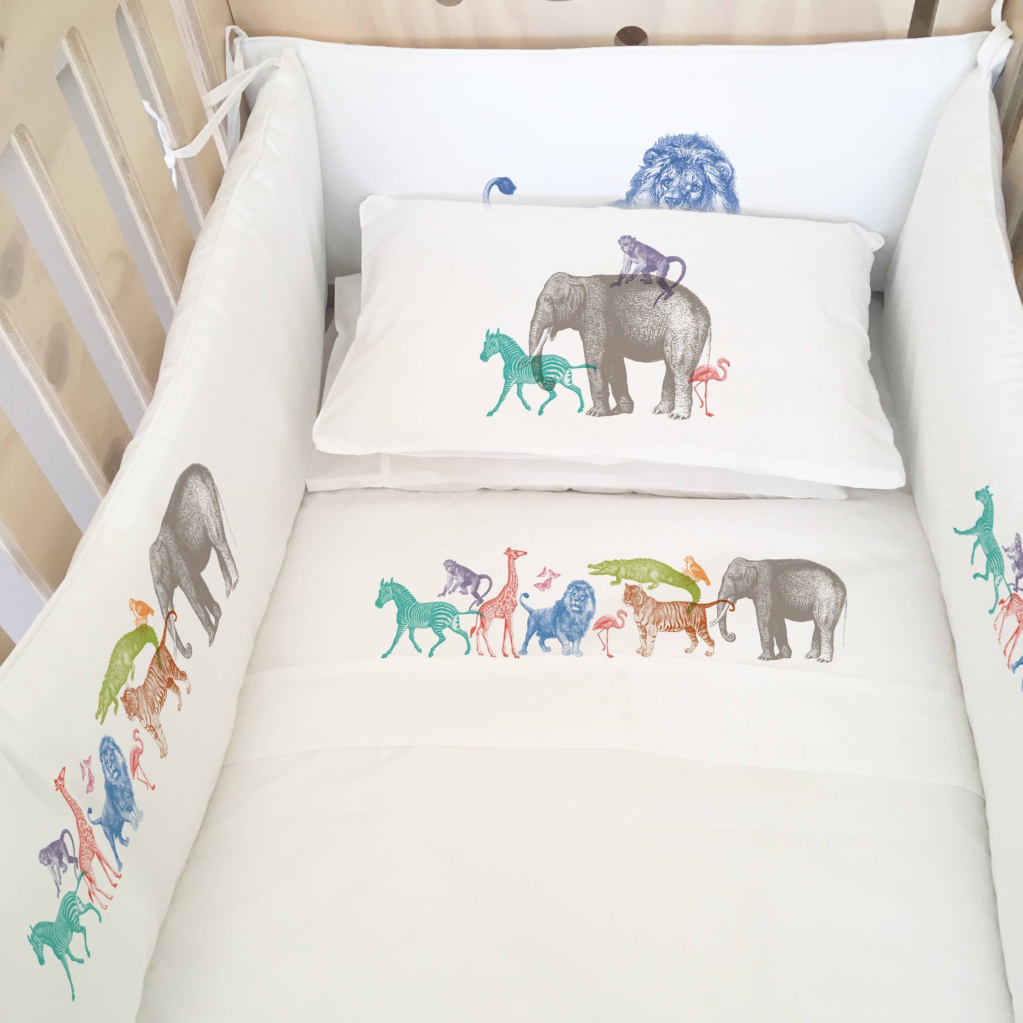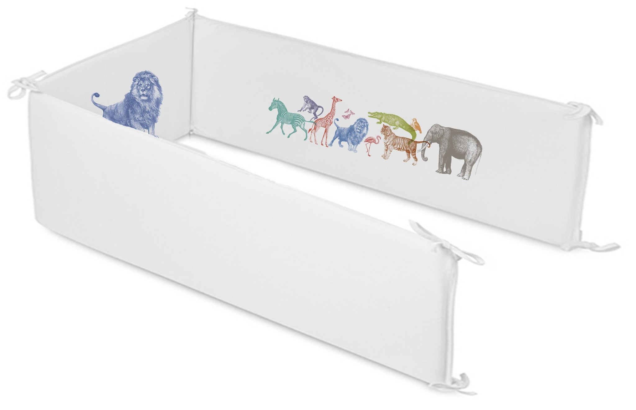 Protector para cuna de 70×140 cm. Dos laterales acolchados y una cabecera con amarras.