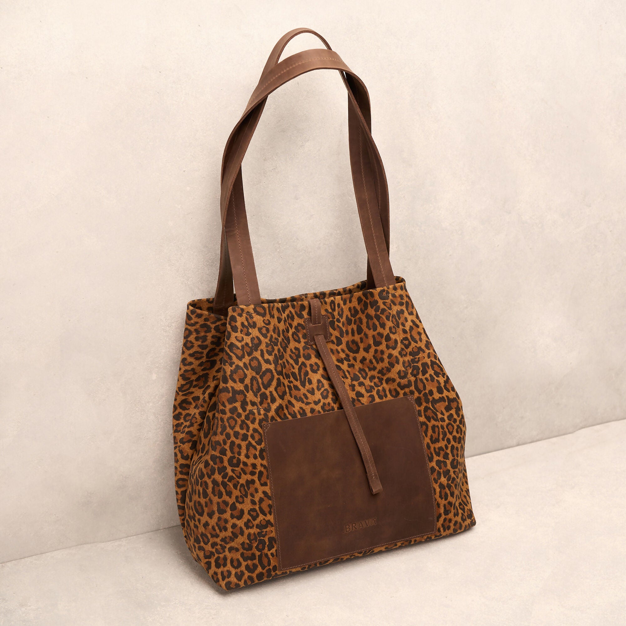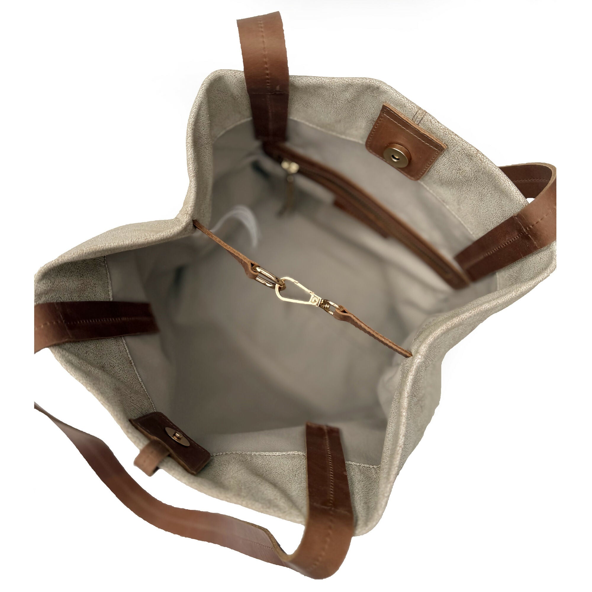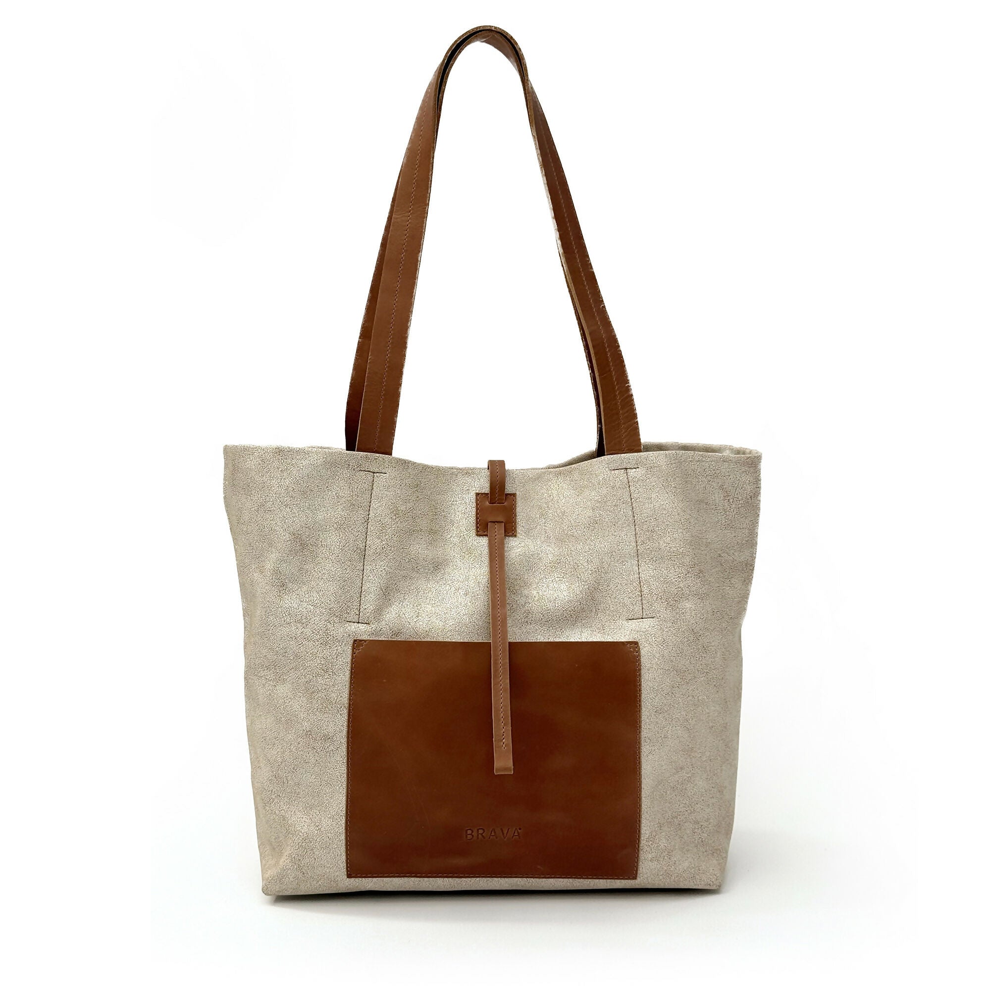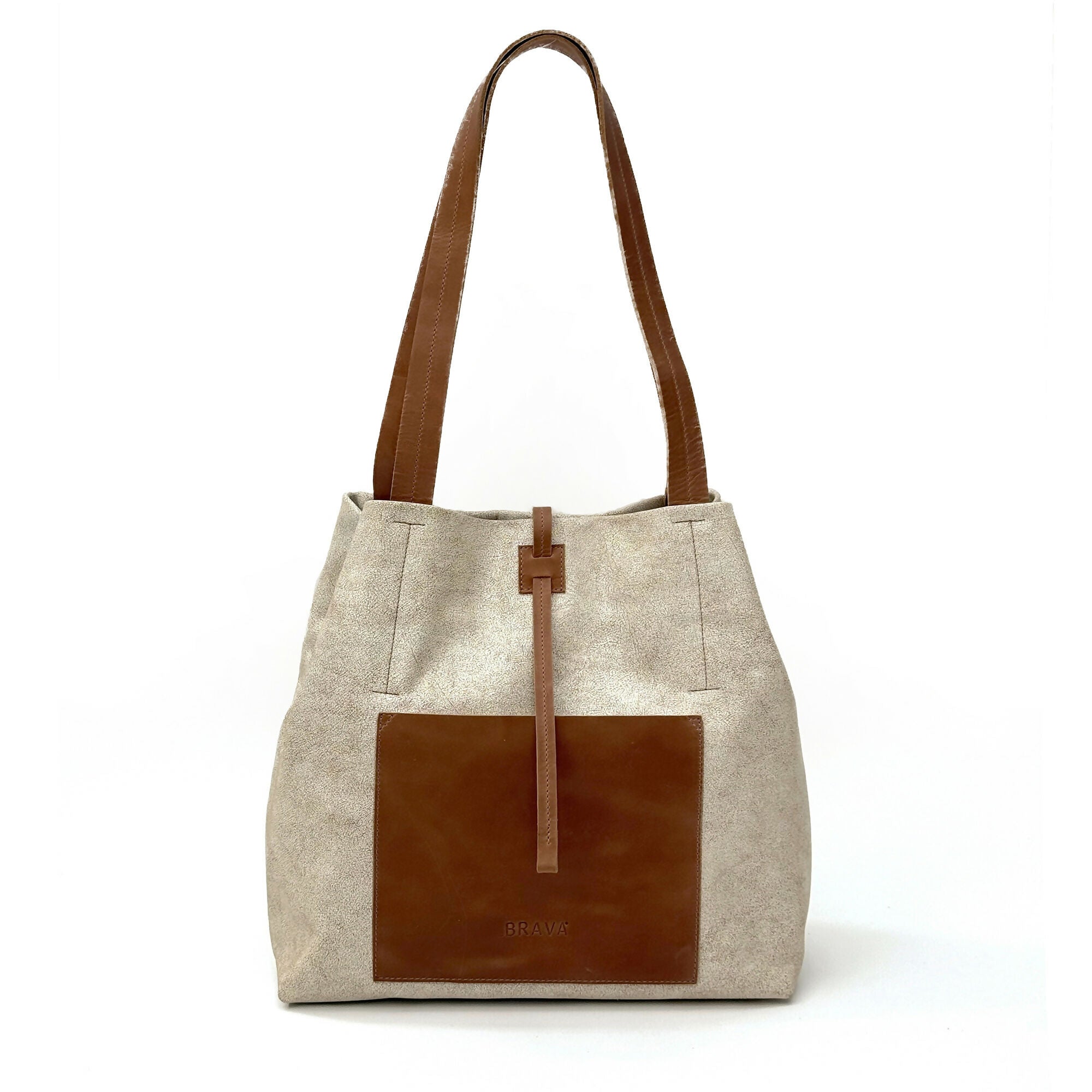 Bolso tote de reno en múltiples opciones de color combinado con cuero chocolate, básico y ultra cómodo de tamaño ideal que seguro no podrás dejar de tener.