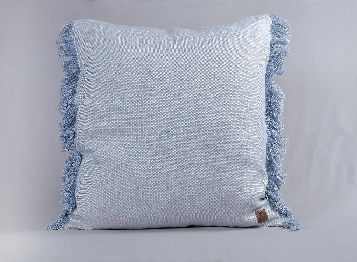 Cojín 60x60 100% lino color celeste, relleno con plumas.