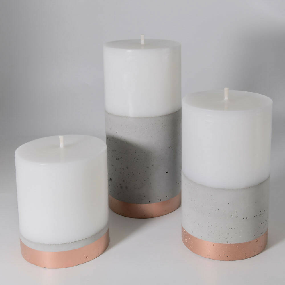 Pack 3 Velones con hormigón Línea Cobre (22cm, 17cm, 12cm) Küme