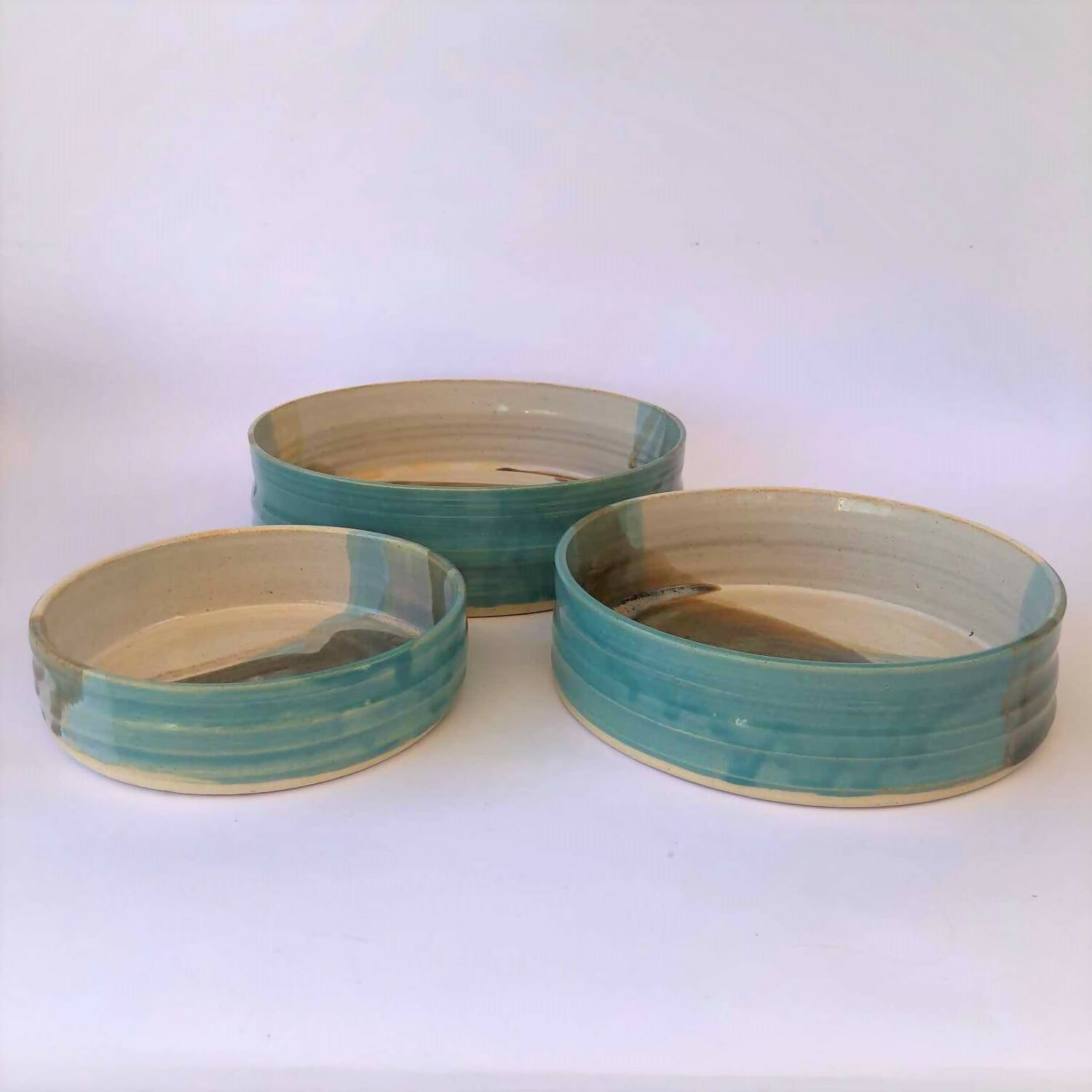 Tres fuentes hechas a mano en cerámica gres, apto para refrigerador, microonda y lavavajillas