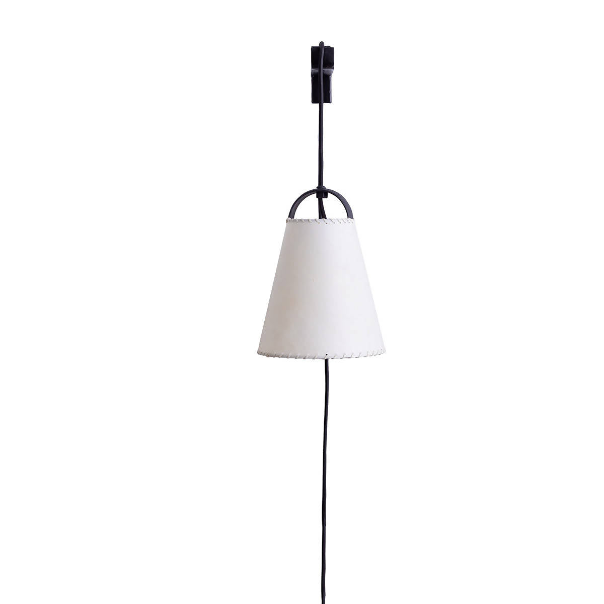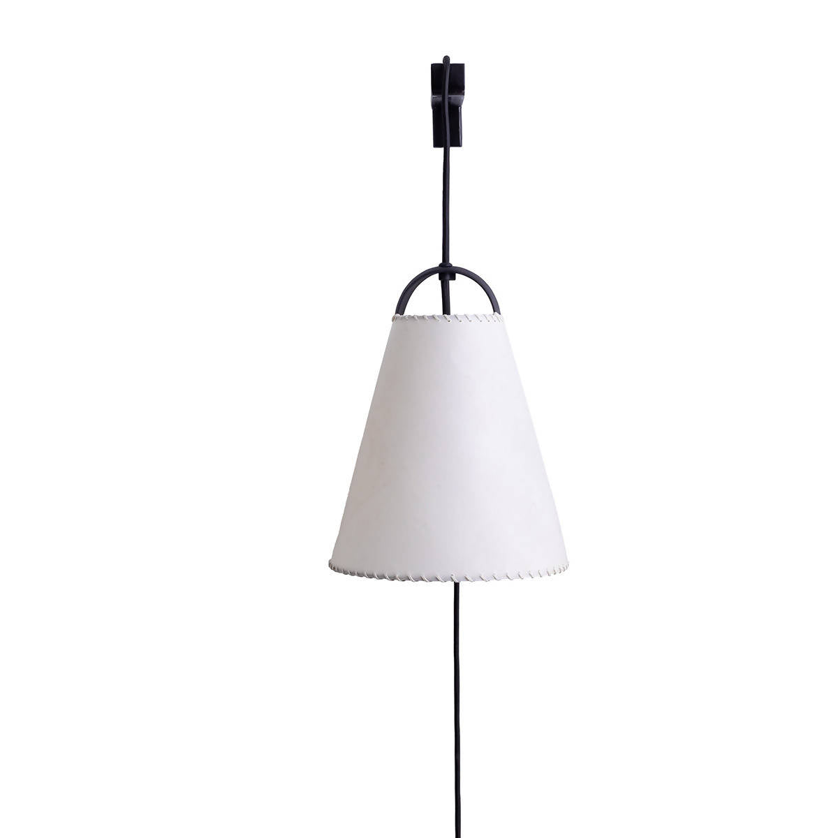 De aire primitivo e industrial, elaborada en pergamino natural y fierro soldado al arco, esta lámpara aporta mucha calidez a los espacios. Su iluminación es bifocal, emitiendo luz por la parte superior e inferior. Además el pergamino es traslúcido por lo que ilumina los espacios de manera general con una bella luz cálida color ámbar.