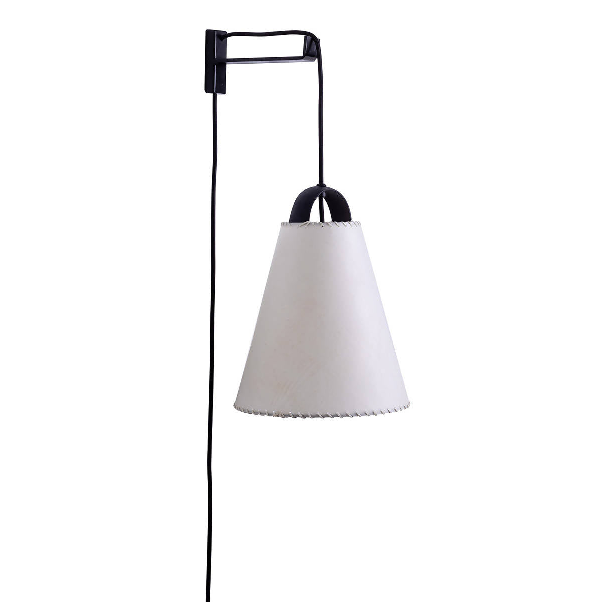 Materialidad: Pantalla pergamino y fierro. Cable textil liso negro (300 cm)