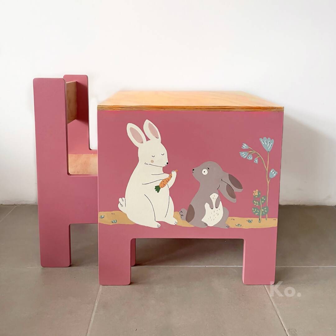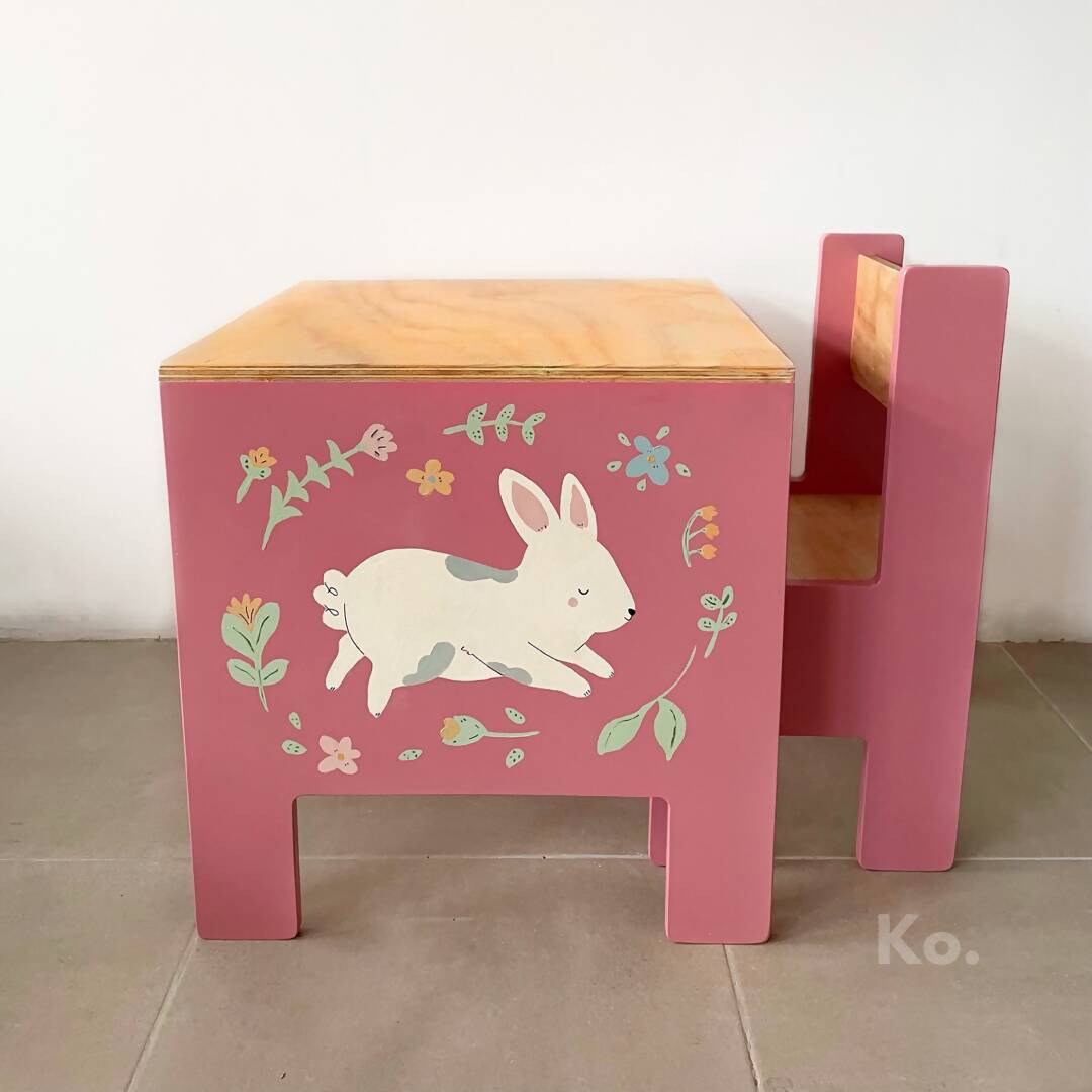 (A PEDIDO) Mesa con una silla "Rabbits and Carrot"