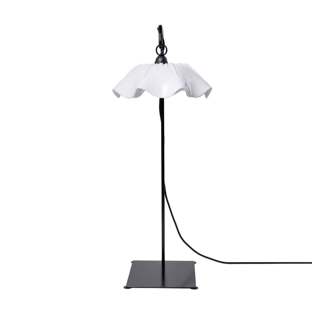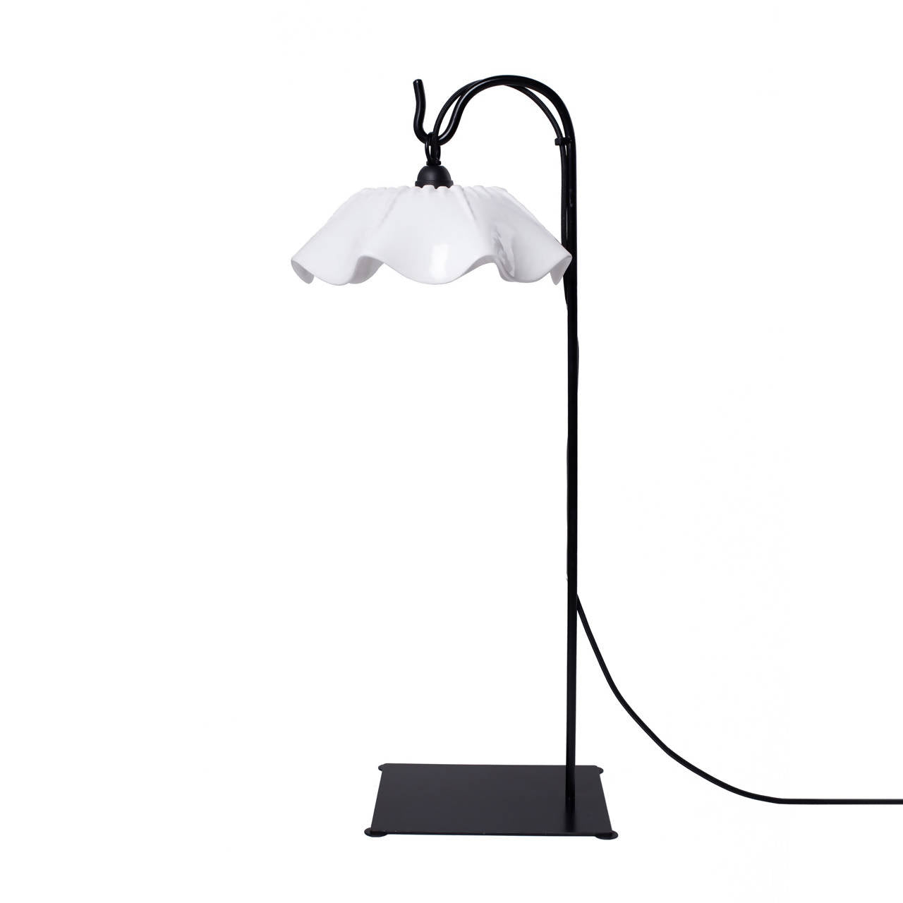 Su forma decorosa nos recuerda las tulipas antiguas que podíamos ver en casa de nuestros abuelos. Blanca alba y de sinuosas ondulaciones es esta lámpara de cerámica artesanal.