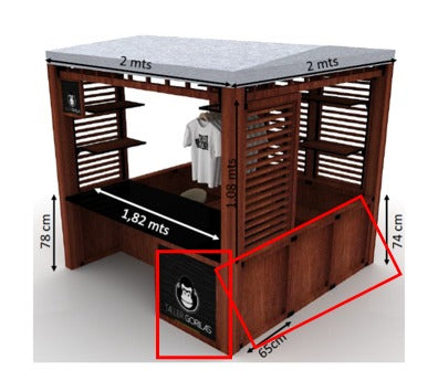Cada expositor tendrá un espacio disponible para ambientar de 2 x 2 mts con un stand que tiene una estructura de madera con varias repisas y estantes para colocar productos o colgar artículos livianos. Además de una gráfica personalizada con su marca y QR Instagram.