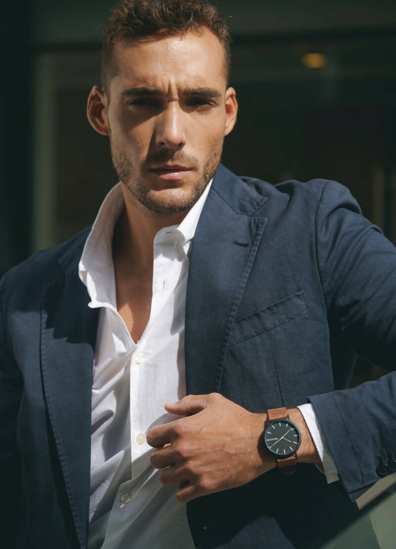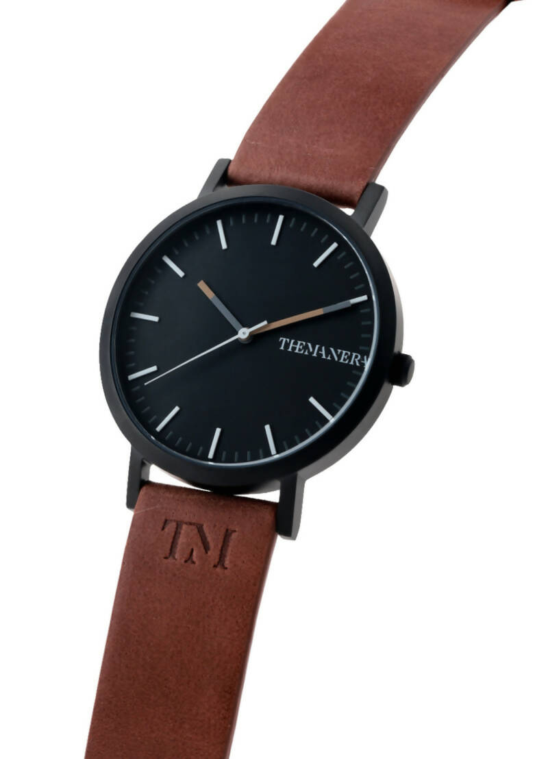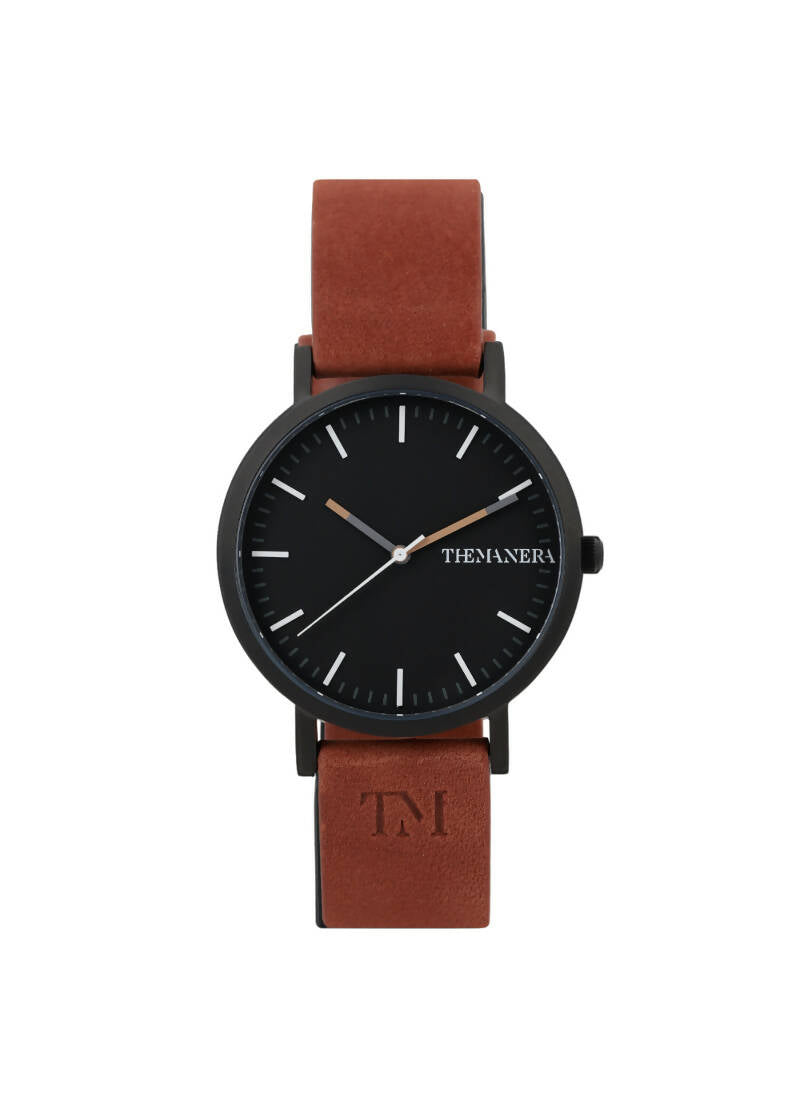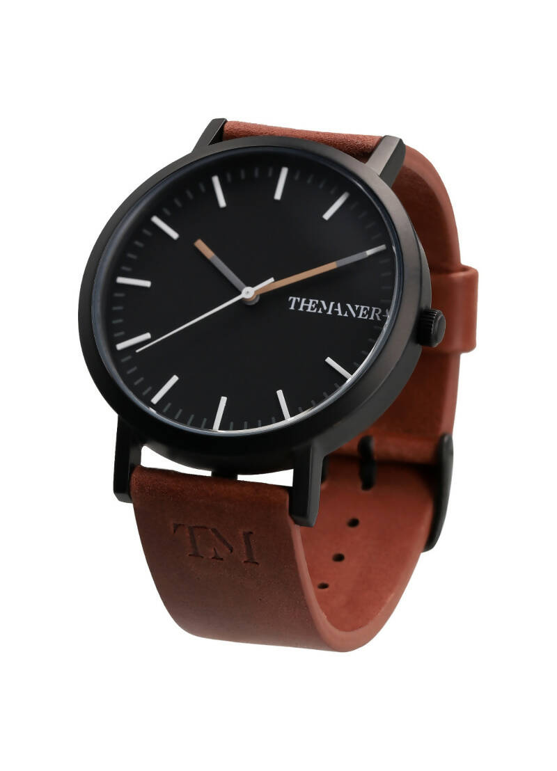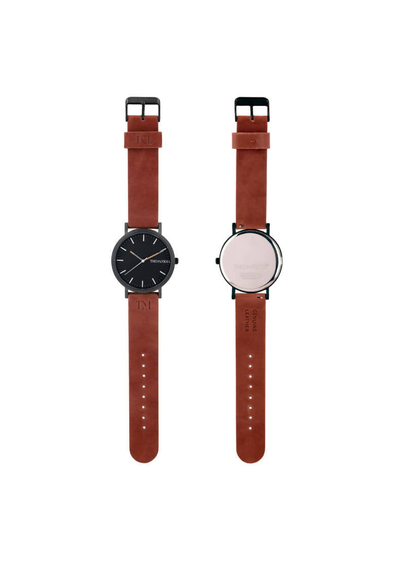 THEMASTER Brown es un reloj clásico, simple y no pasa de moda, combina con todo! Tiene una carcasa negra, con manecillas bicolor para las horas / minutos y el segundero blanco. Correa de cuero café ajustable y removible.