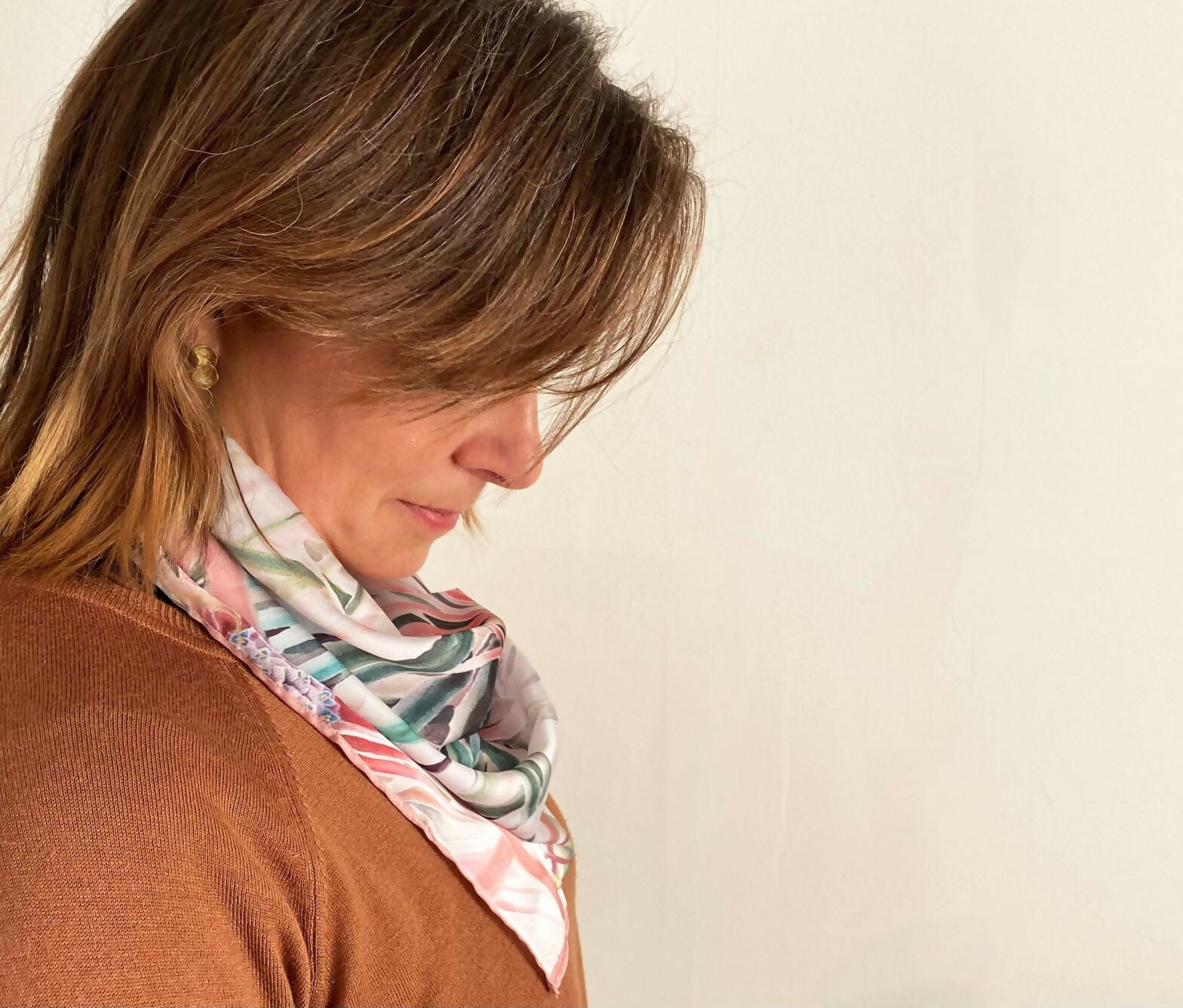 Pañuelo con ilustraciones flora nativa chilena pintadas por Luz María García.