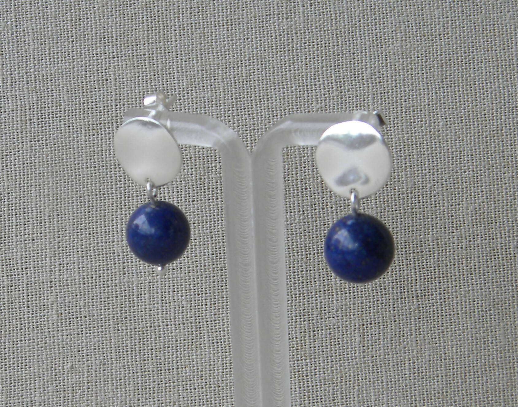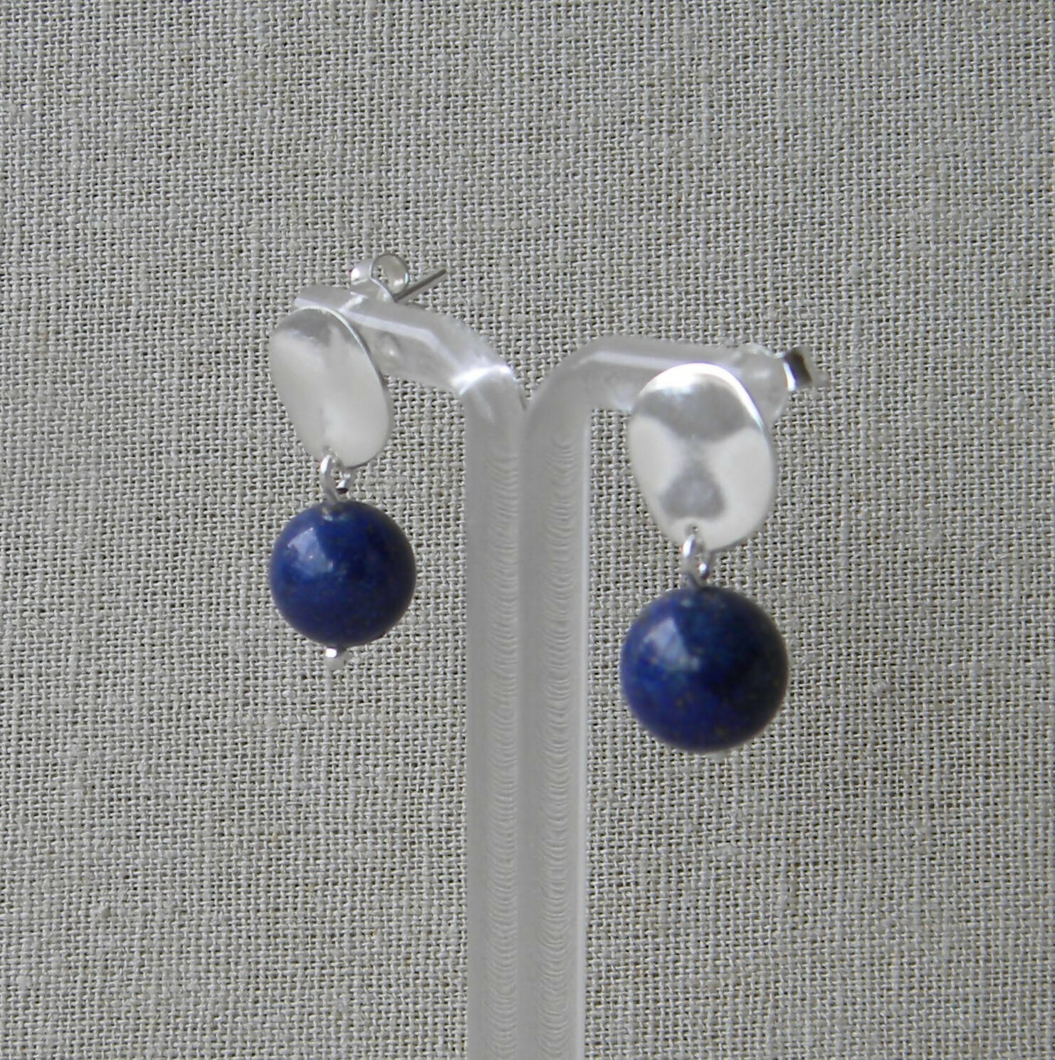 El tamaño de la base de plata es 1cm de diámetro, es gruesa y levemente ondeada y su lapislázuli es redondo de tamaño mediano. Tienen un palo y tuerca de plata por detrás.
