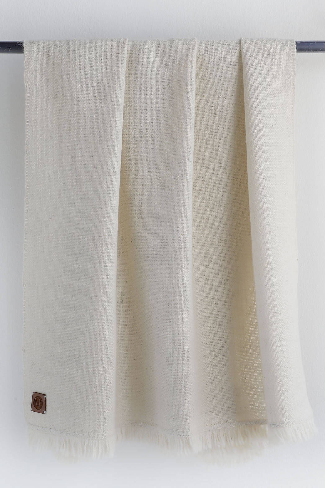 Chal de guagua de alpaca de 120x80 cms. Base y trama cruda, tejido a telar.
