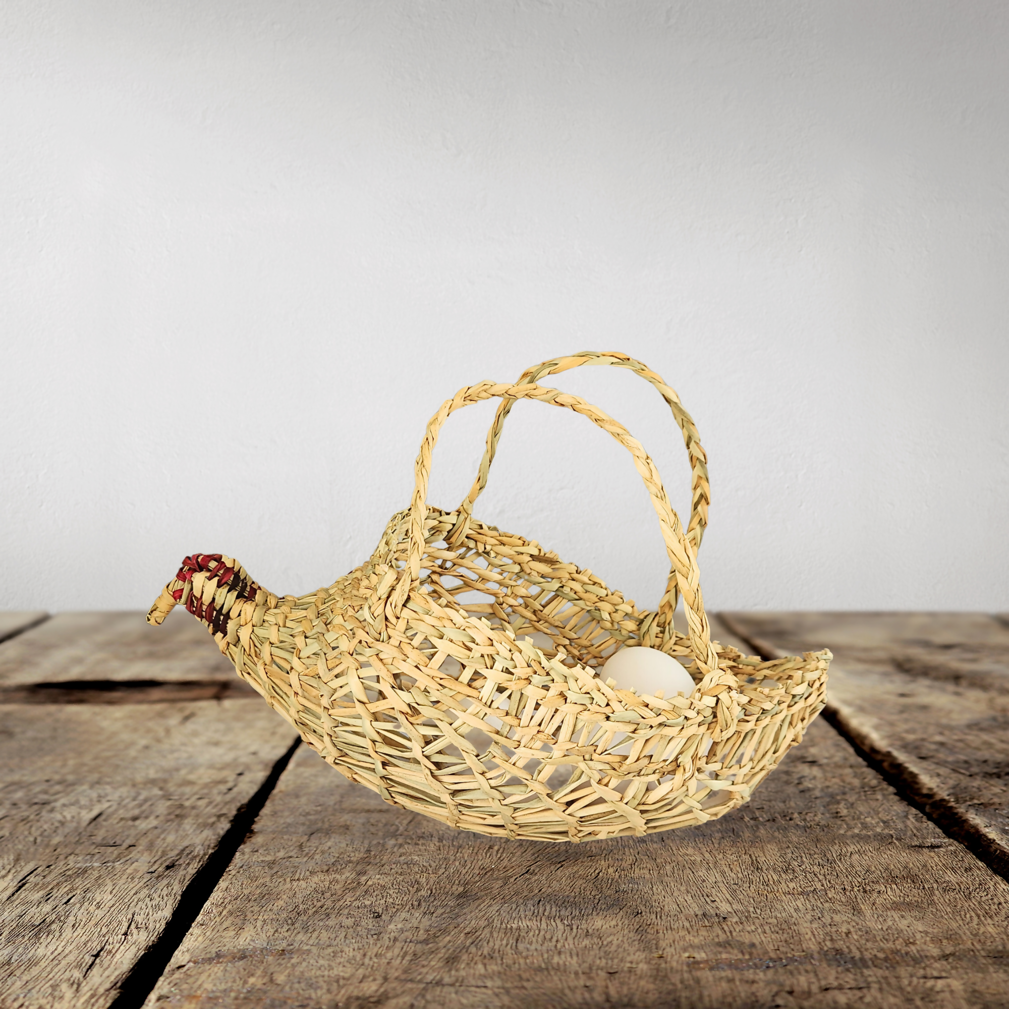 Gallina porta huevos (caben alrededor de 8 a 10 unidades), hecha a mano en fibra vegetal de Junquillo por artesanas del archipiélago de Chiloé, específicamente de la localidad de Quellón.