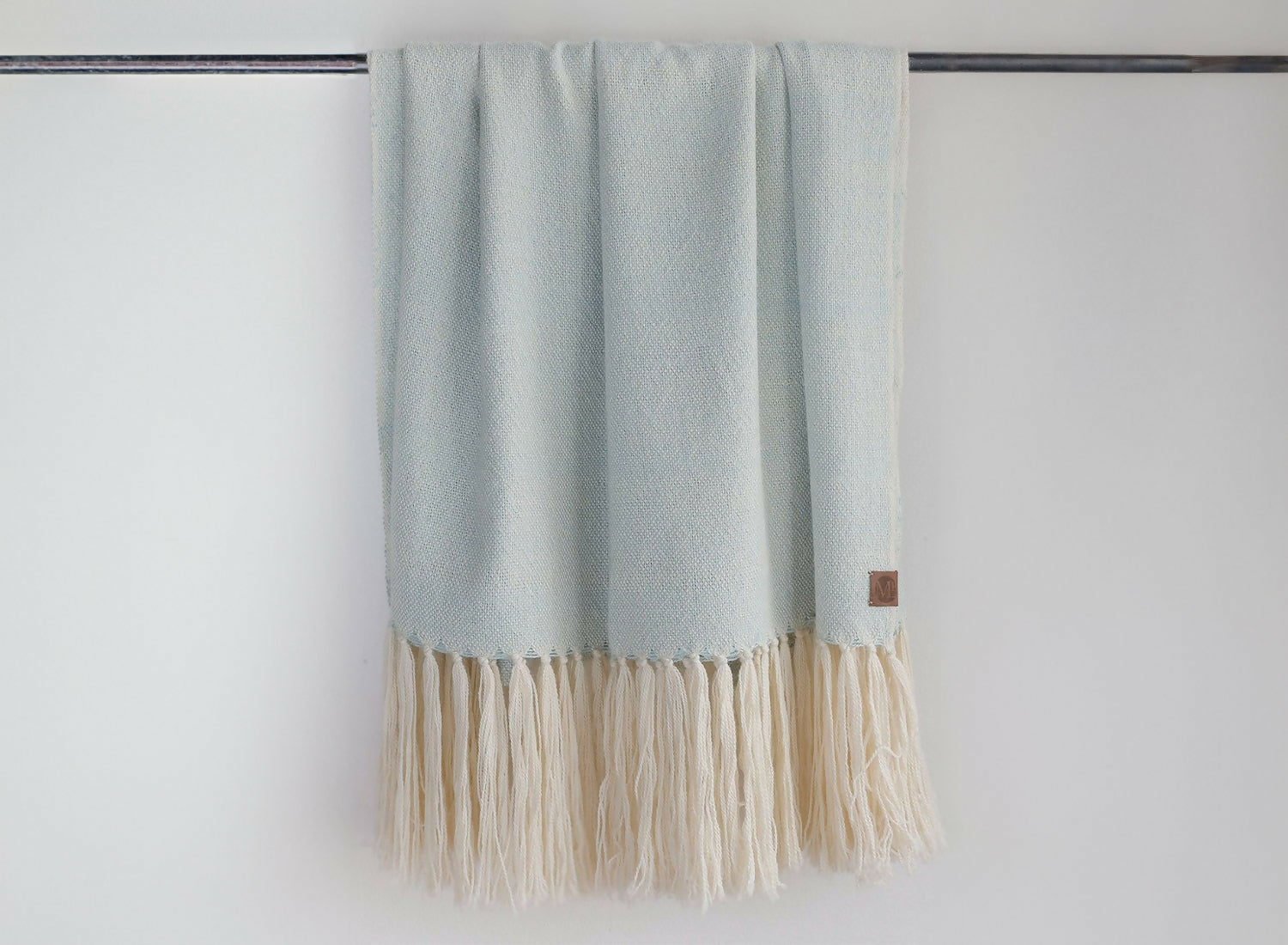 Piecera Queen alpaca 100% color crudo y verde agua 180x90
