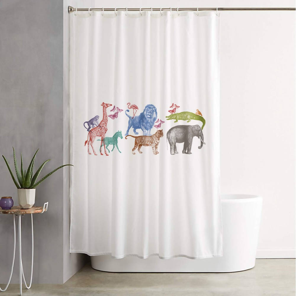 Cortina de Baño Stella elaborada en algodón blanco 180 x 180 cm. Parte superior reforzada con 12 ojales.