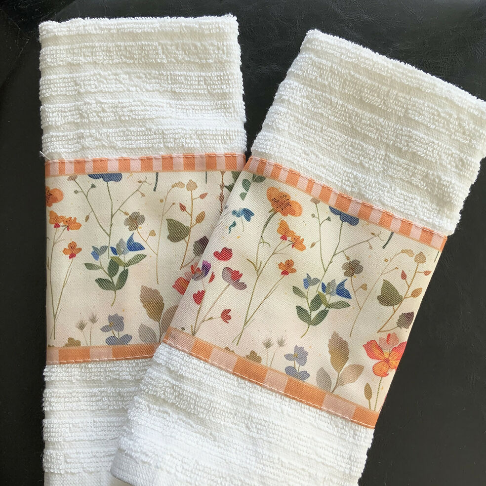 Toallas de Visita Flores - Algodón con Franja Decorativa en Gabardina