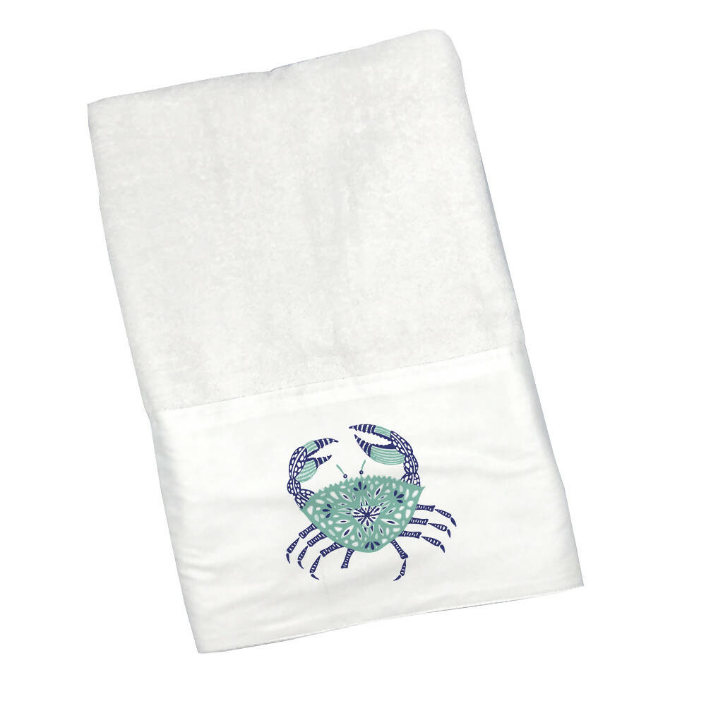 La Toalla Surfing Cangrejo Azul, 100% algodón es el complemento perfecto para tu baño y está en perfecta armonía con la Cortina de Baño del mismo diseño.
