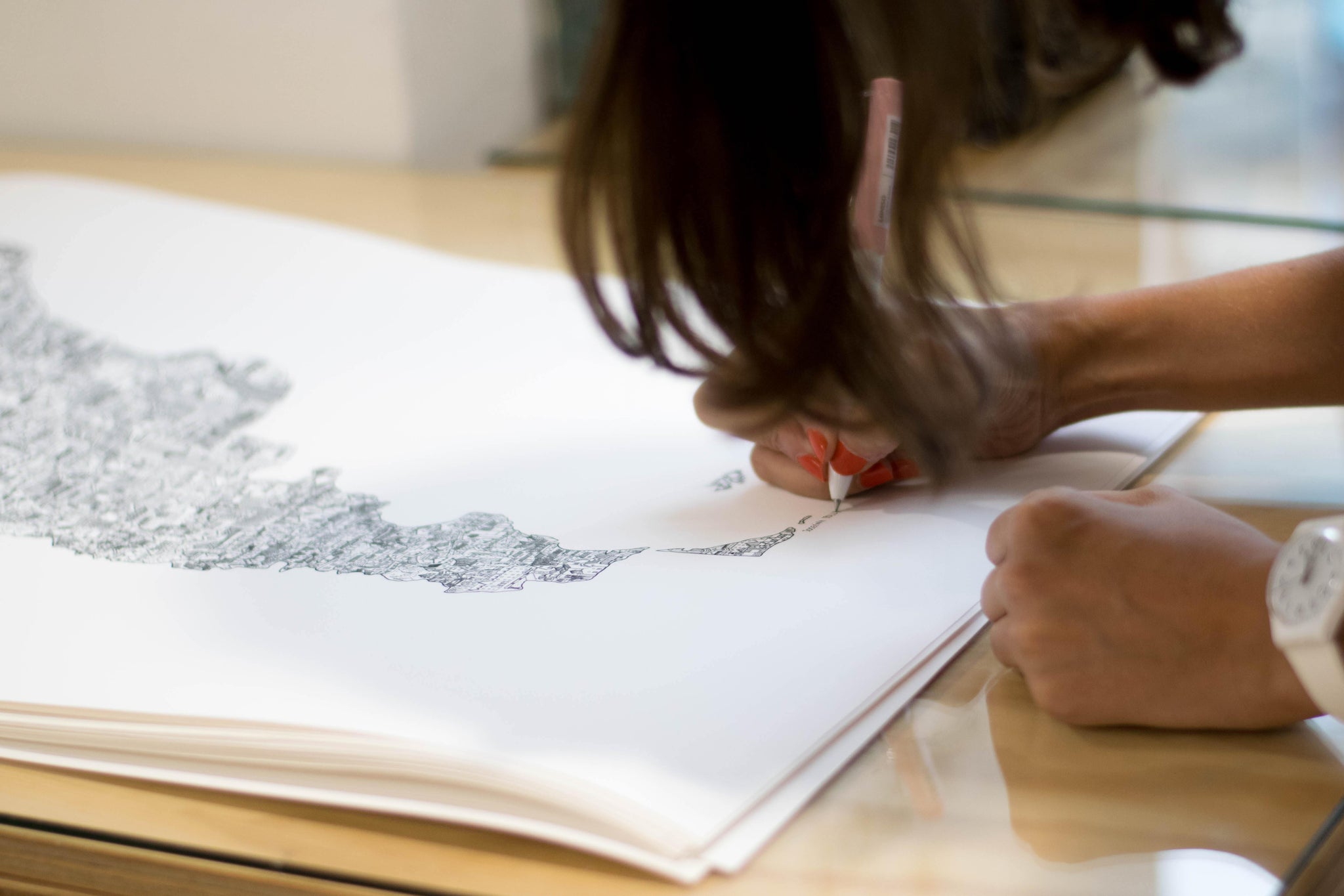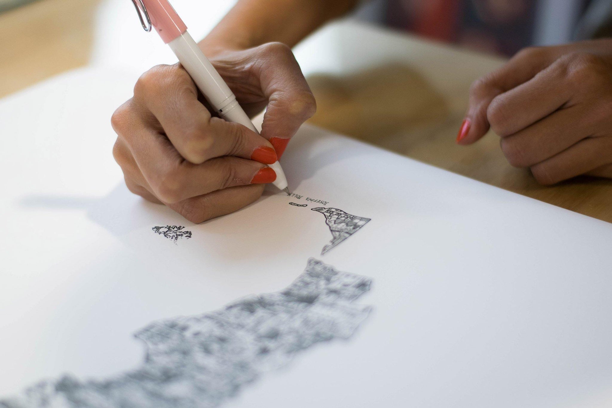 Puedes perderte en las líneas de este mapa dibujado a mano y descubrir desde el Cabildo de Humahuaca en Jujuy, hasta la estación de tren de Puerto Deseado, de Santa Cruz, pasando por el Edificio Kavanagh, la Biblioteca Nacional, el cerro Fitz Roy, y cientos de lugares más.