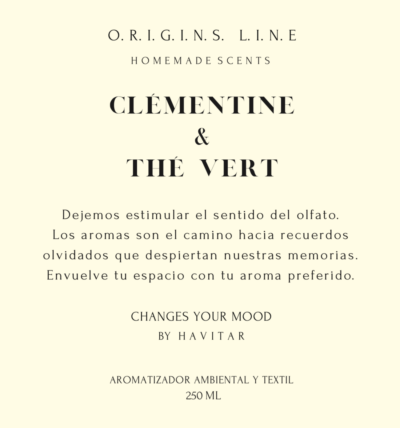 Dentro de nuestra línea "HOMEMADE SCENTS" Línea Orígenes by HAVITAR, encontrarás nuestros aromatizadores ambientales y textiles, todos te invitan al mejor de los estados. Son perfectos para perfumar tus sabánas, toallas, cortinas y/o para armonizar tus rincones preferidos.
