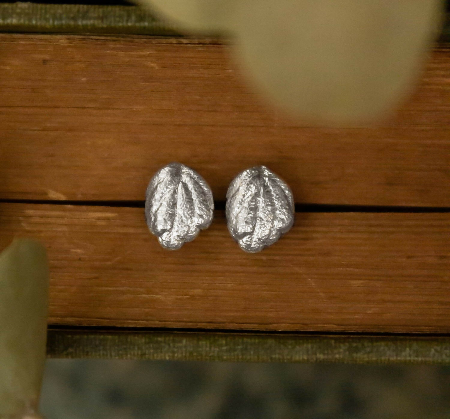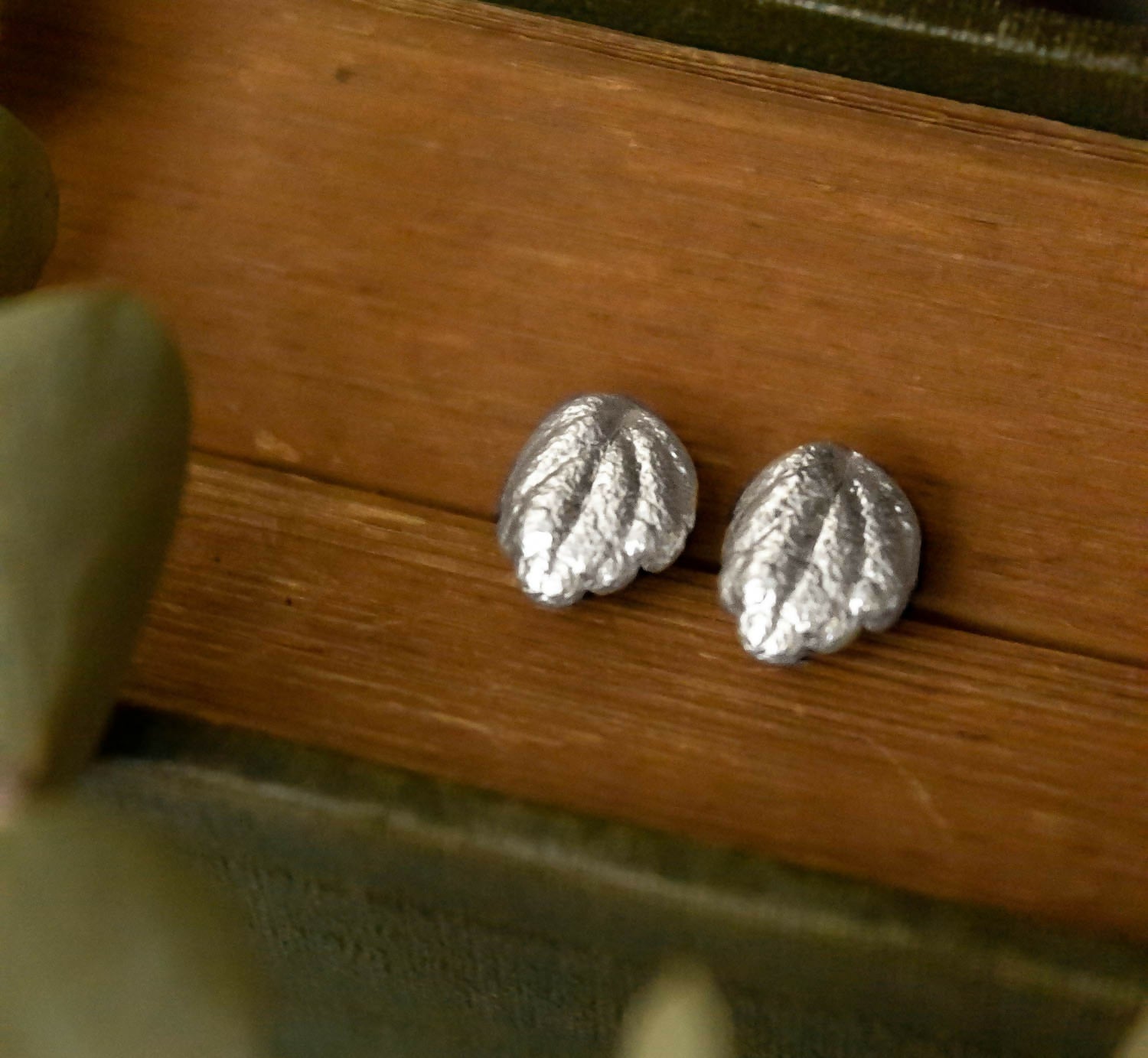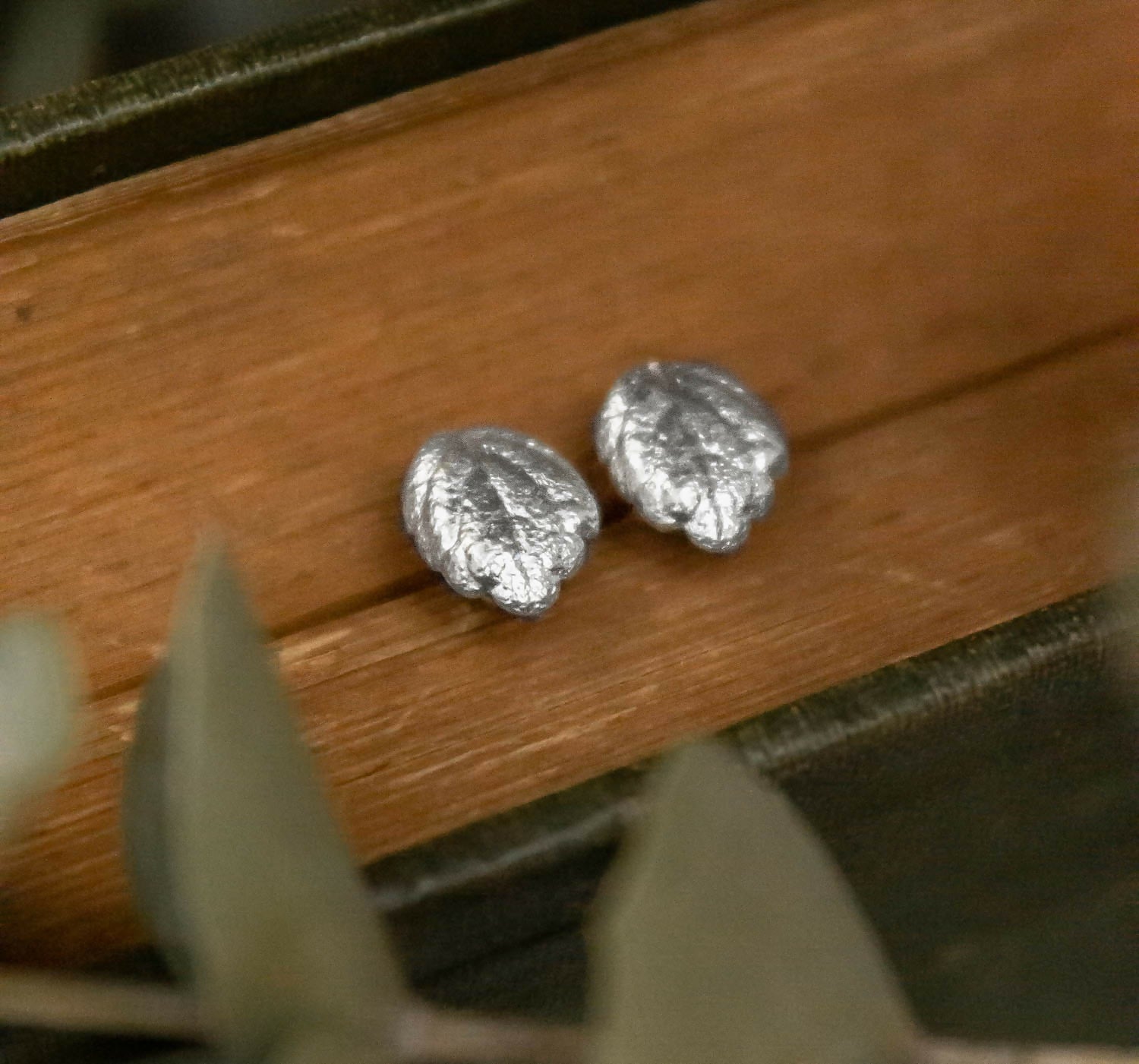 Aritos de hoja de Suculenta. Están hechos en plata 950. Pertenecen a la colección Bosque de Midas, donde trabajamos con la matriz de la hoja real.