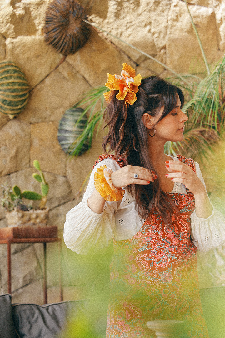 Nuestras Bambas son scrunchies únicos de gran tamaño para amarrarse el pelo de forma cómoda, fácil y con estilo. Puedes usarlas en una cola, tomate, trenza o como se te ocurra! Son elaboradas a mano por mujeres artesanas de diferentes localidades de Chile y a través de ellas promovemos los oficios tradicionales, el desarrollo local y el comercio justo. El diseño de cada colet es original y de edición limitada ¡Son el regalo y accesorio perfecto!