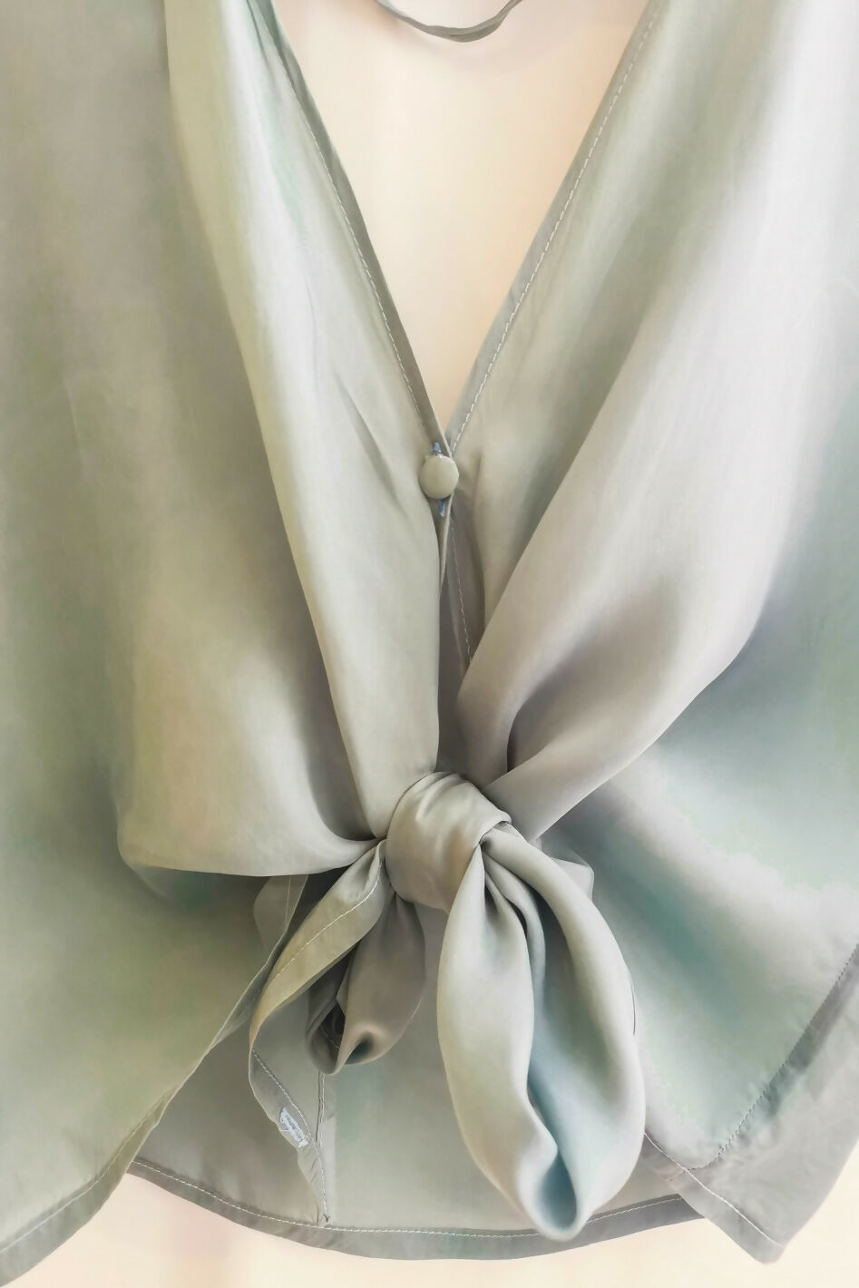 Está confeccionada en cupro, que es un tejido que se obtiene al procesar excedentes de la producción del algodón. Es fresco y ayuda a regular la temperatura del cuerpo. Tiene una caída preciosa, no por nada le llaman la seda vegana.