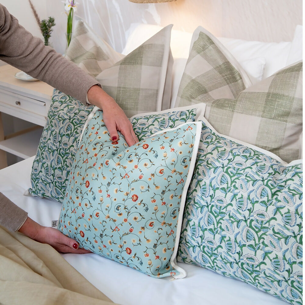 Precioso cojín en Velvet crudo estampado de 60 x 60 cm., con suave textura.