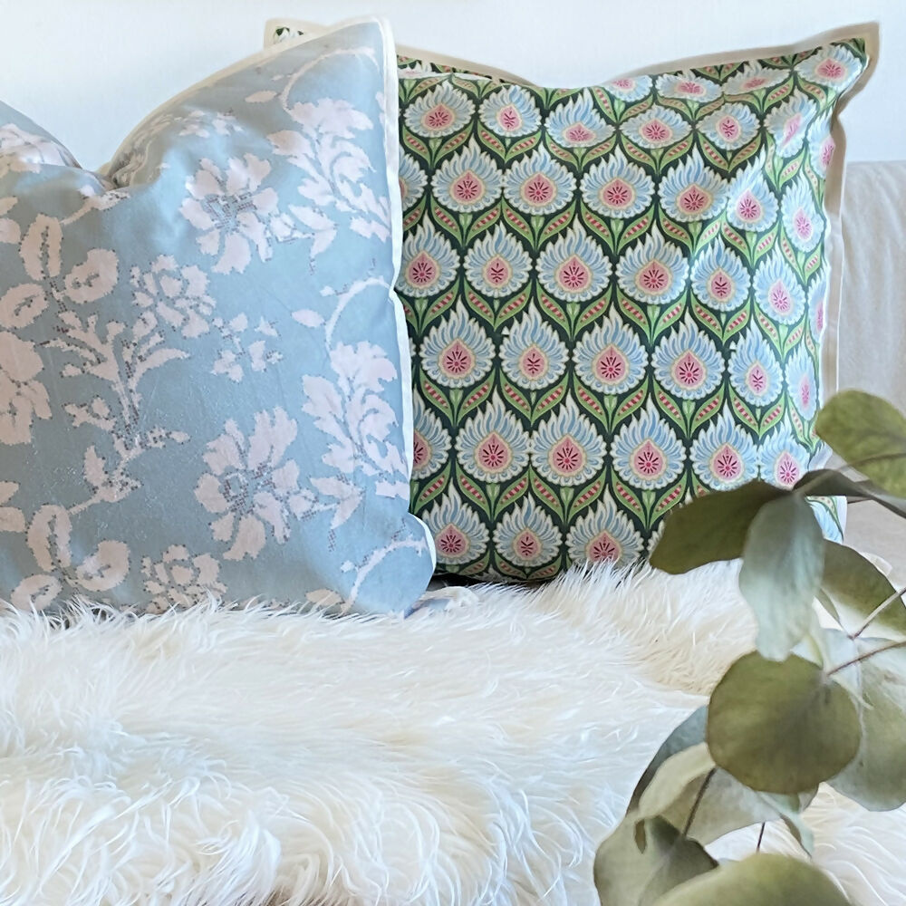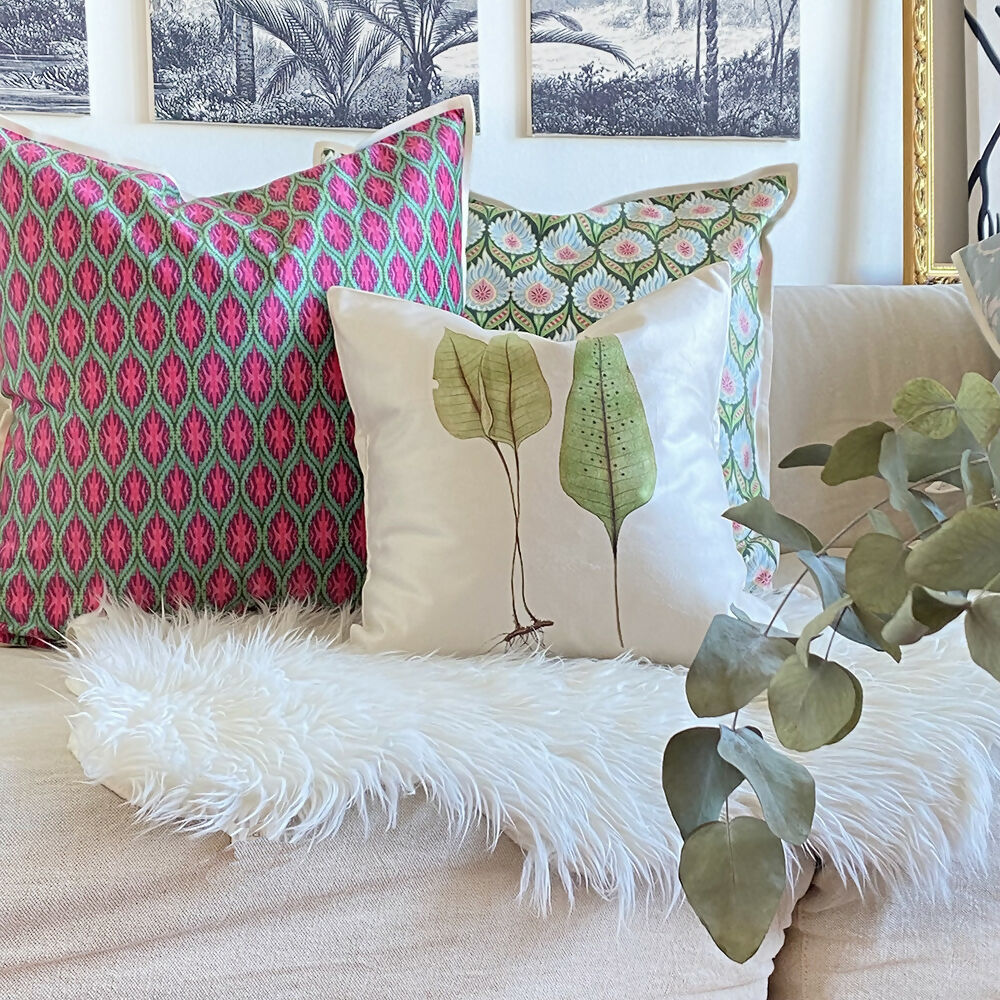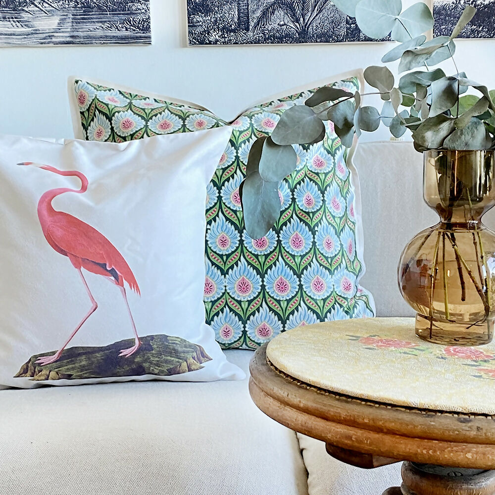 Precioso cojín en Velvet crudo estampado de 60 x 60 cm., con suave textura.