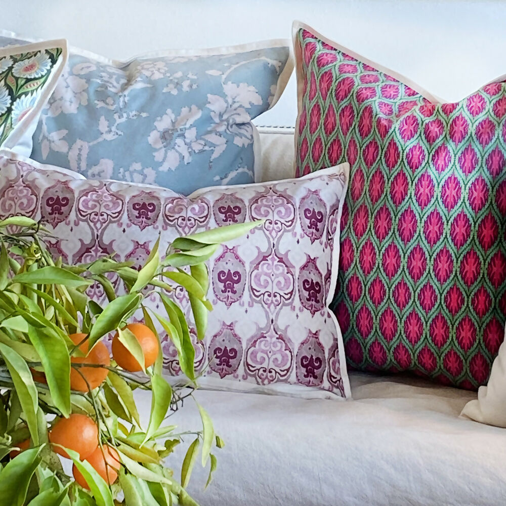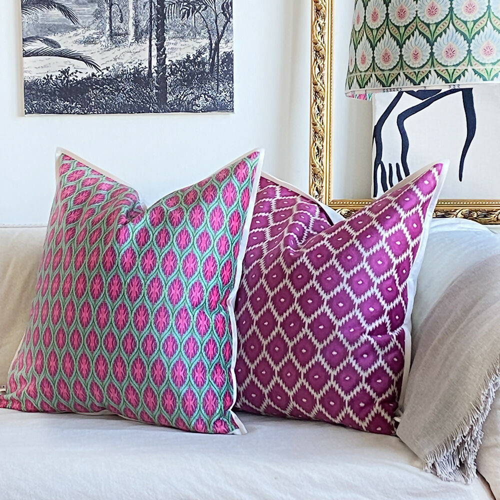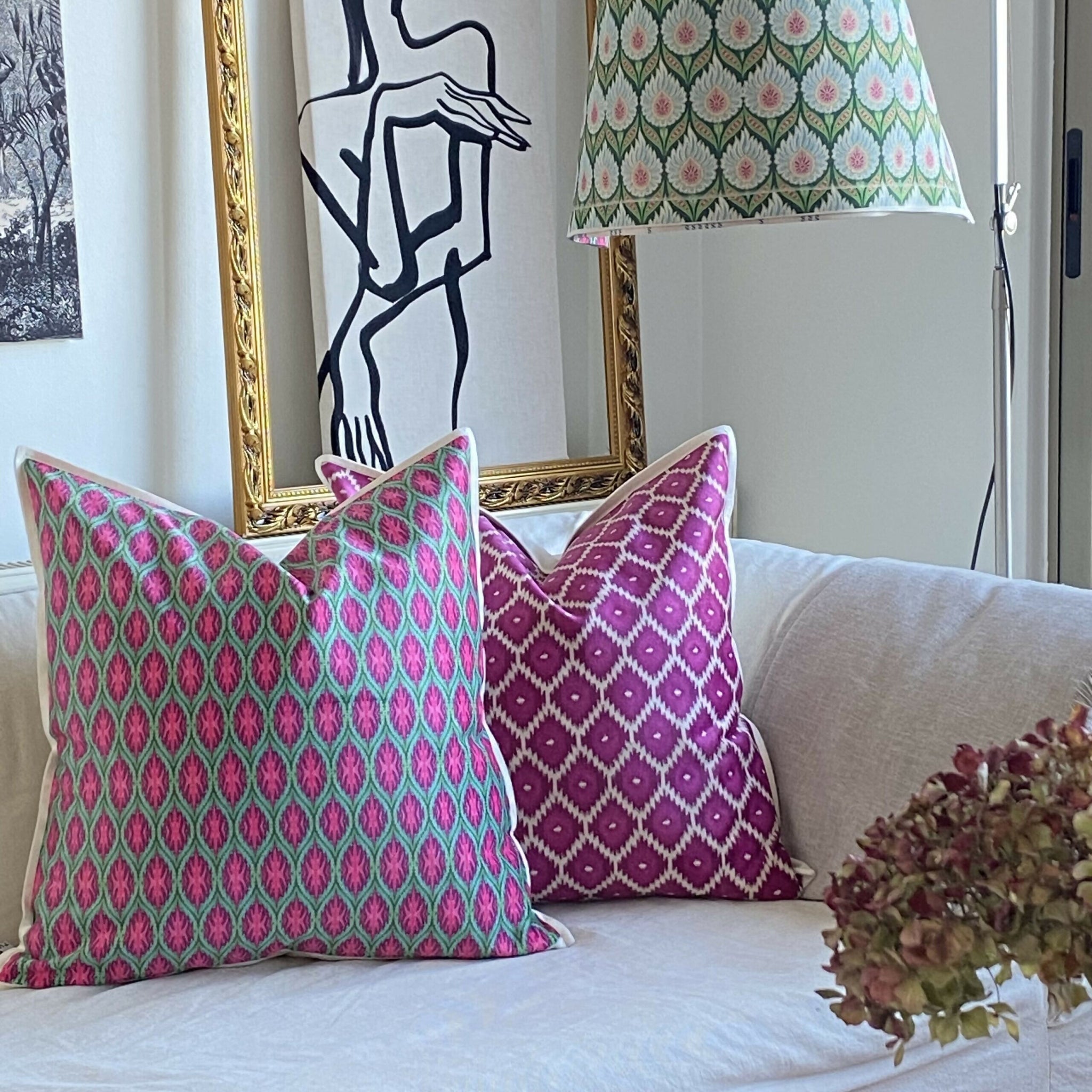 Precioso cojín en Velvet crudo estampado de 60 x 60 cm., con suave textura.