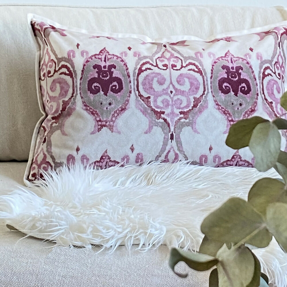 Este cojín se verá precioso en tú cama o en un sofá, junto a la manta estampada de la Colección.