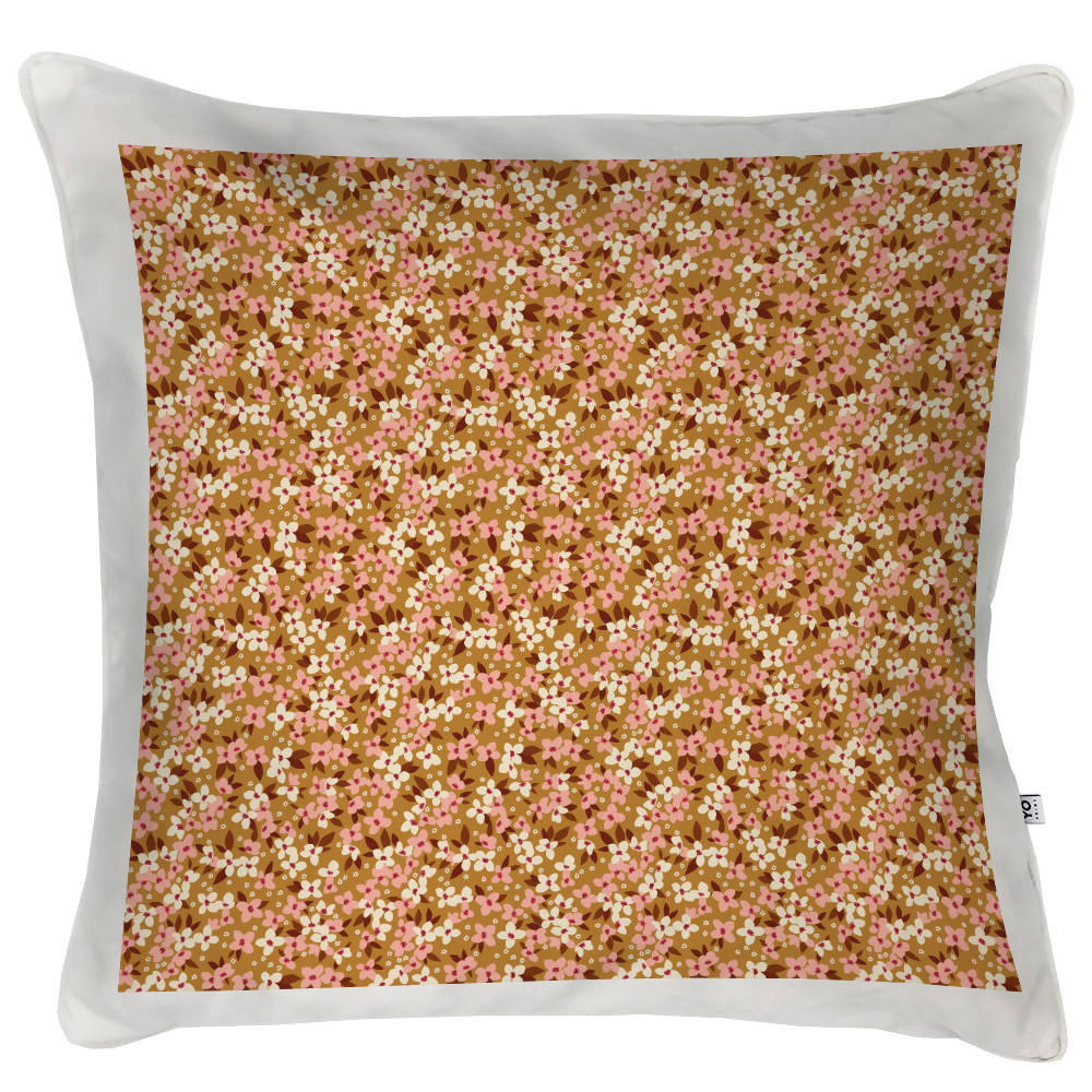 Exquisito cojín en tela afelpada cruda estampada en gran formato.