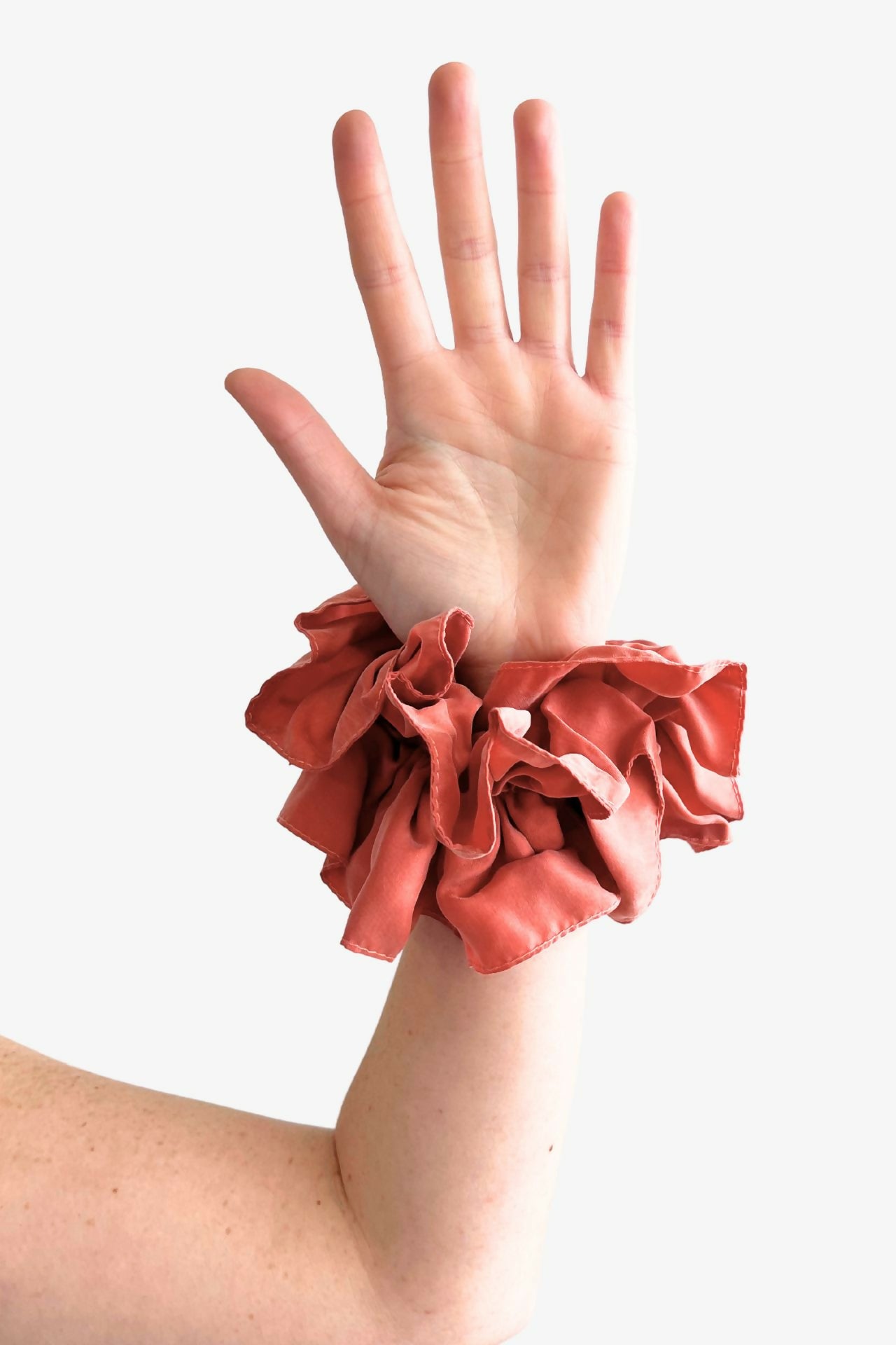y además! El elástico es de caucho natural biodegradable. Es un scrunchie respetuoso con tu pelo y con la Tierra.